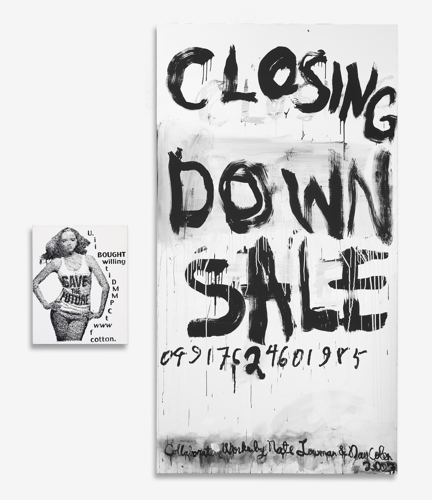 Nate Lowman and Dan Colen, Closing Down Sale, 2007. Acrylic on canvas, 108 x 55 inches, 274 x 140 cm