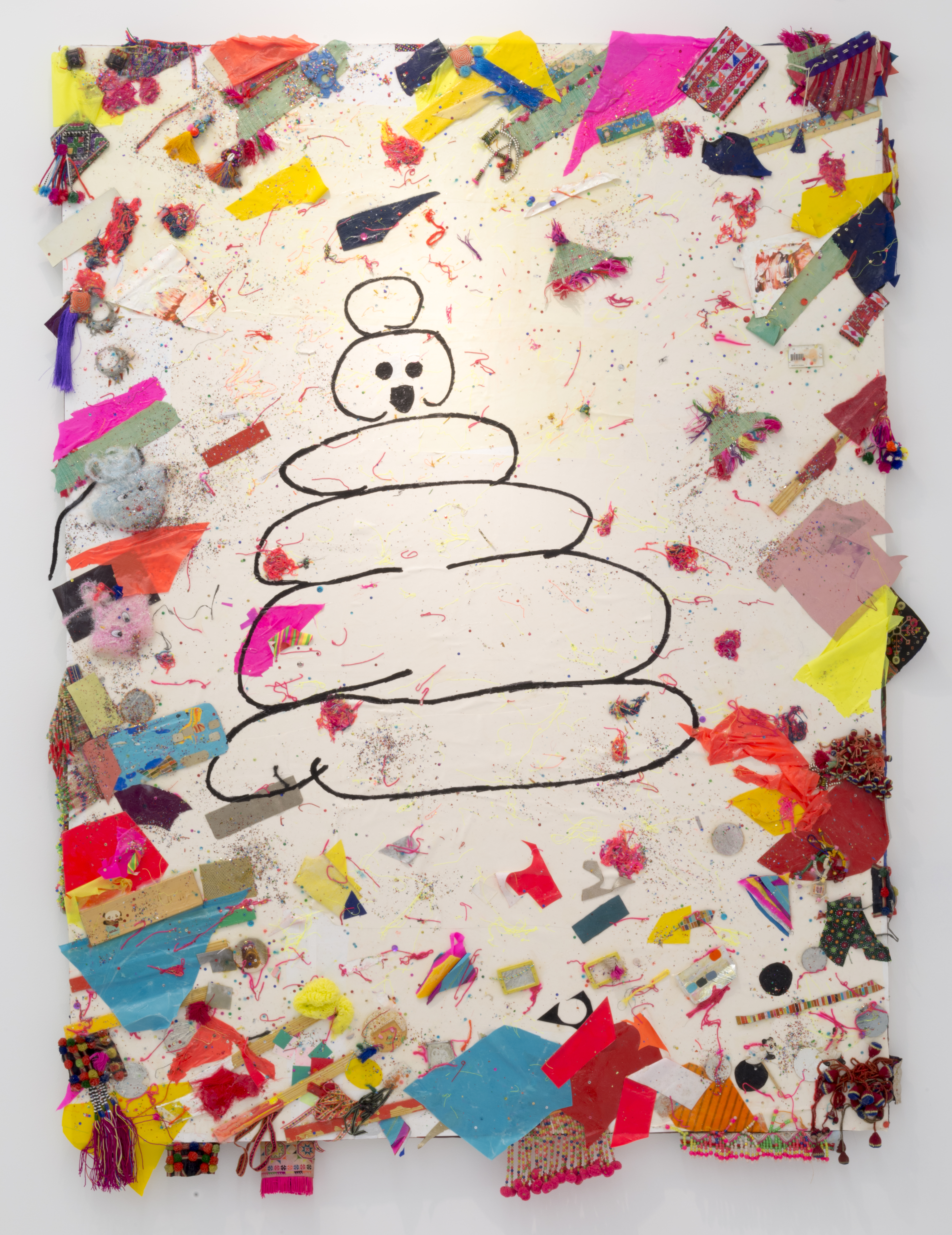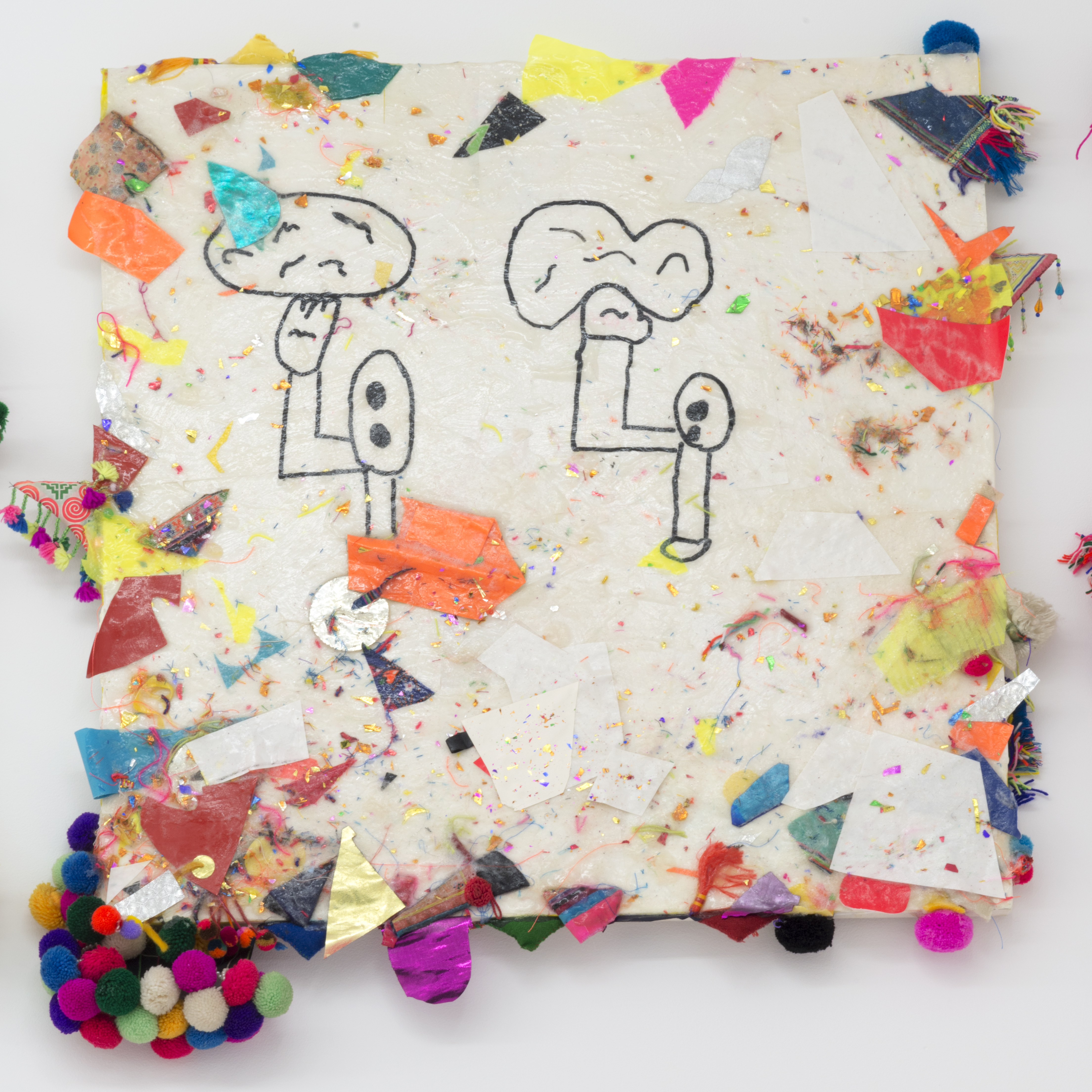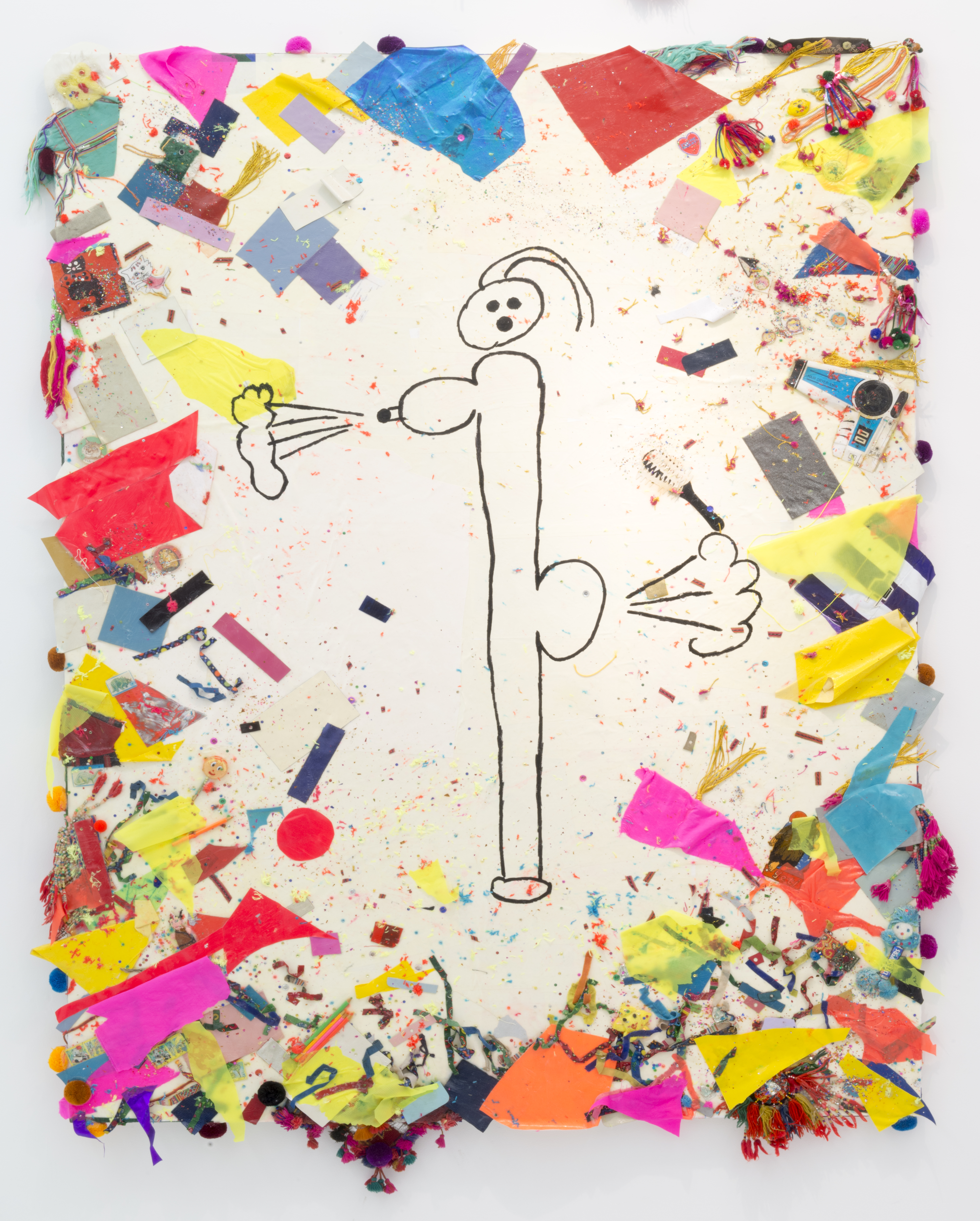 The Hole is proud to present the much-anticipated first solo exhibition by Misaki Kawai at a New York gallery in six years. In Hair Show, Kawai will present large scale sculpture, painting, drawing and furniture. After traveling around Asia for the bulk of 2013, Kawai returned to her studio in Brooklyn with not only tons of sketches and ideas but also materials gathered from Tibet to Vietnam; all manner of fabric, textiles and her favorite pom-poms. These materials are incorporated into her world of whimsy as she turns drawings into paintings, sculpture into wall works, sketches into furniture, transmuting simple materials into new characters.