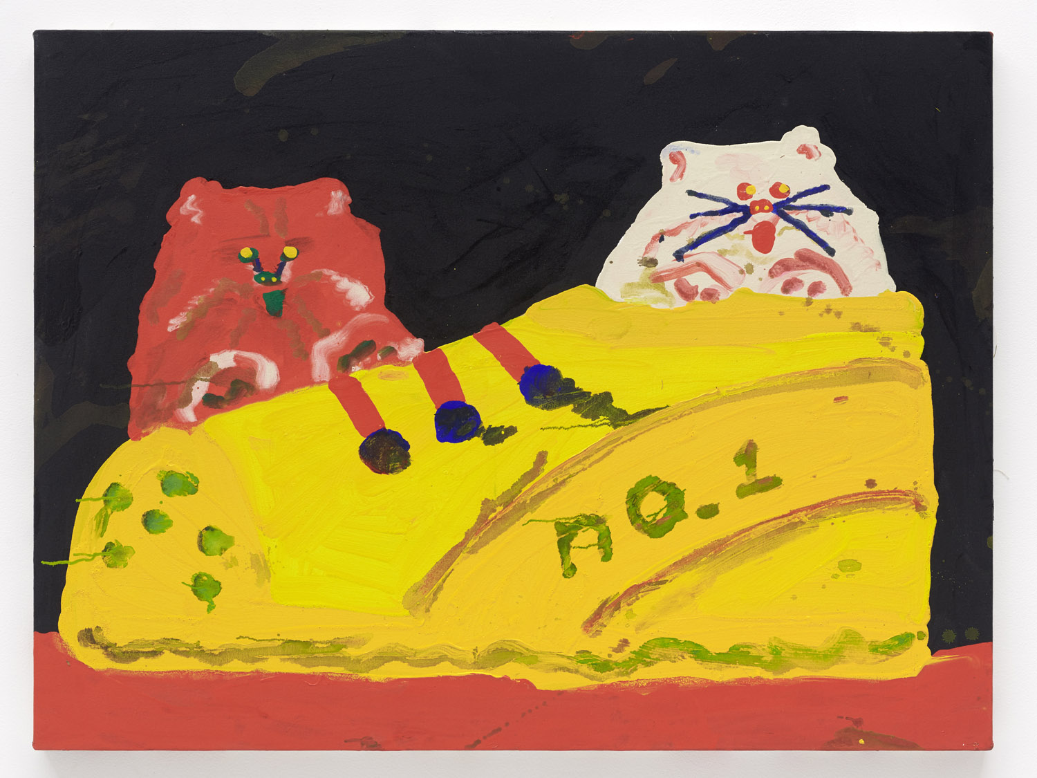 These new paintings are what Misaki calls “sloppy style” or the hasty, brushy improvisational style that she has implemented many times in her career. It captures her inventiveness and sense of humor that is an intrinsic part of “Heta-Uma” or “Good/Bad” style of artmaking that developed in Japan.