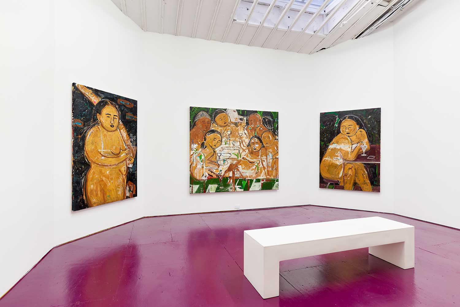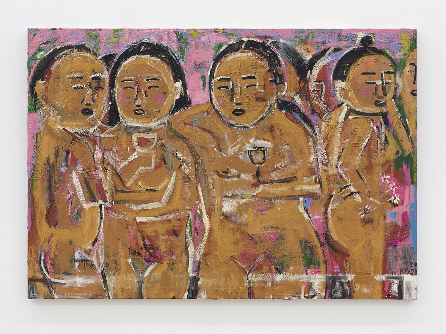 Monica Kim Garza (b. 1988 New Mexico) has gained widespread recognition through her vibrant portrayals of women of color. The Mexican-Korean artist rejects the male gaze, celebrating confident and uninhibited women through her figurative works. Visually her paintings are lively and instantly recognizable, presenting brown-skinned, curvy women engaging in leisurely activities. Garza experiments with form and contour, reimagining the classical female nude in oil, acrylic and collage on canvas. She has exhibited at V1 gallery and New Image Art for many years and recently also Ruttowski 68 in Cologne and Galerie Julien Cadet in Paris.