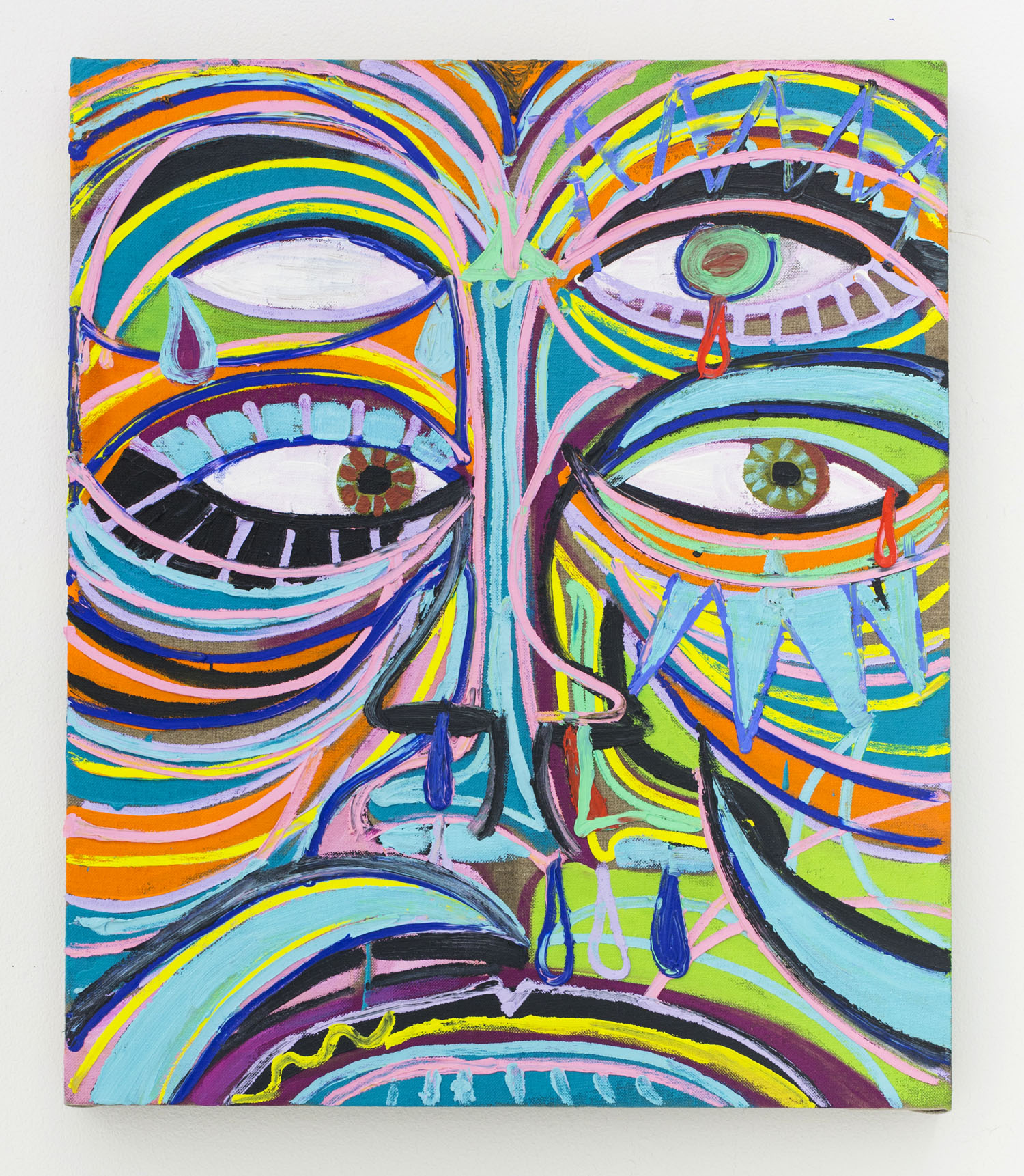 The Hole is proud to announce a group show of raw and fuzzy figuration in our Gallery 3 space featuring paintings and works on paper by nine contemporary artists. In a natural fiber-covered gallery of browns and tans, these bright works will look at the Fauvist impulses of some artists today and in what ways they use strong color and fanciful rendering to deviate from traditional representation.
