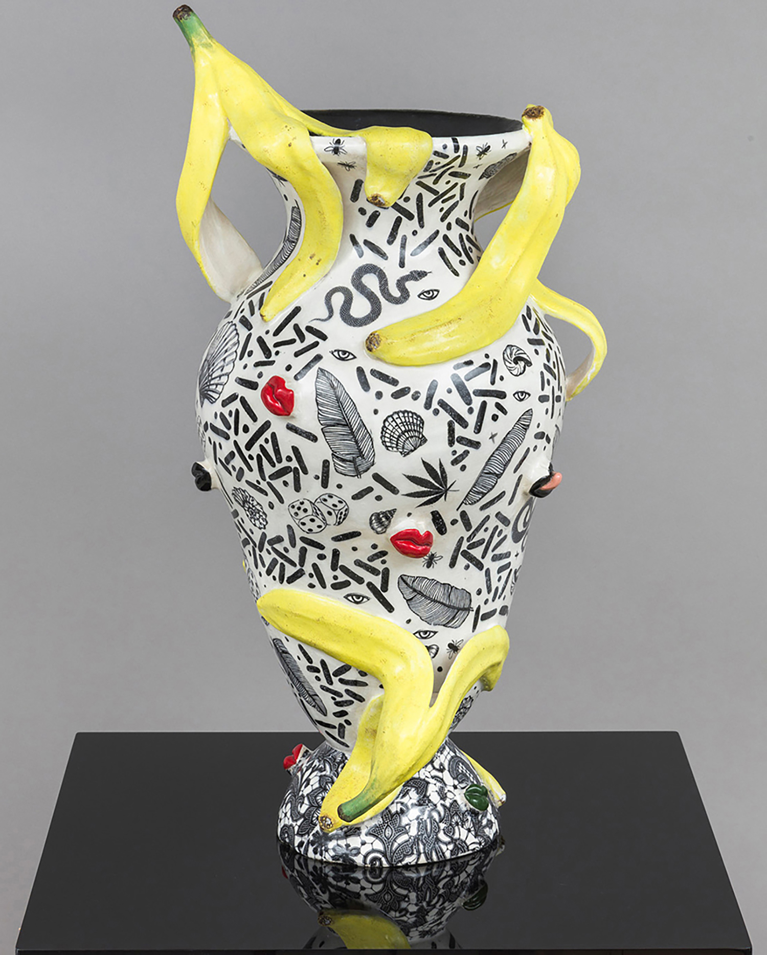 Banana Peel Vase, 2022, ceramic, underglaze, luster, 21 x 11 x 11 inches, 51 x 27 x 27 cm