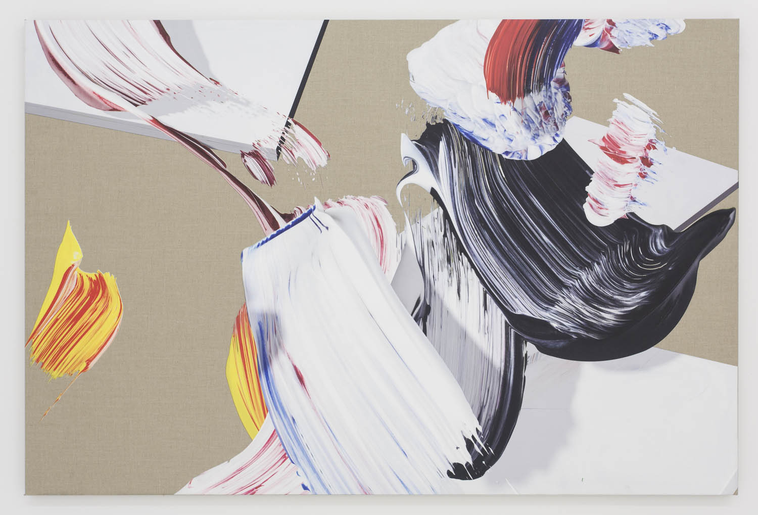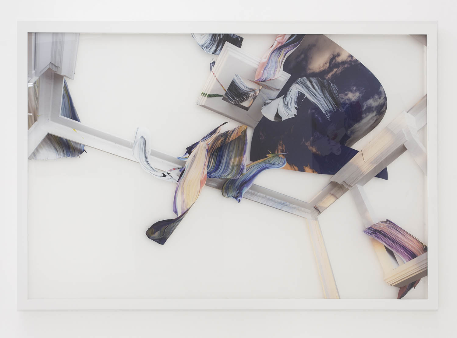 Some artworks in the exhibition more literally blend photography and painting, as in the work of Wil Murray and Matthew Stone. Wil uses multiple darkroom tactics to bring emulsion photography into a sculptural form, sending paint marks on a long journey that ends as hand-colored fibre-based prints, acrylic paint, masonite and wood. Matthew Stone also uses photographic processes to look at painting as a genre: Matthew paints on glass, 3D scans the topography of the stroke, 3D composes the painting in digital space like a sculptor, and outputs the work onto plexi and linen.
