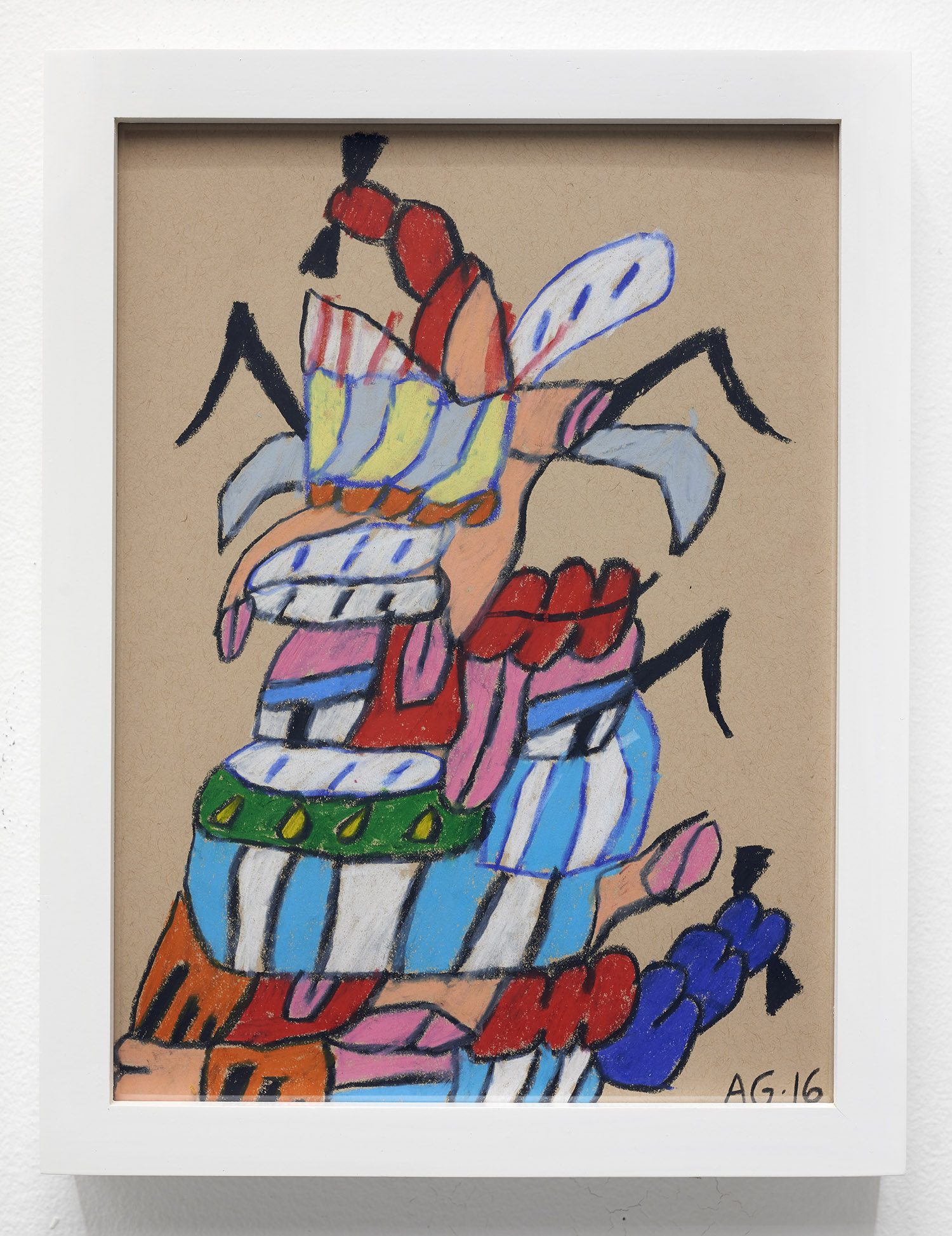 Nicole Eisenmann, Untitled, 2014. Monoprint colored pencil and graphite on paper, 18.5 x 15 inches, 47 x 38 cm
