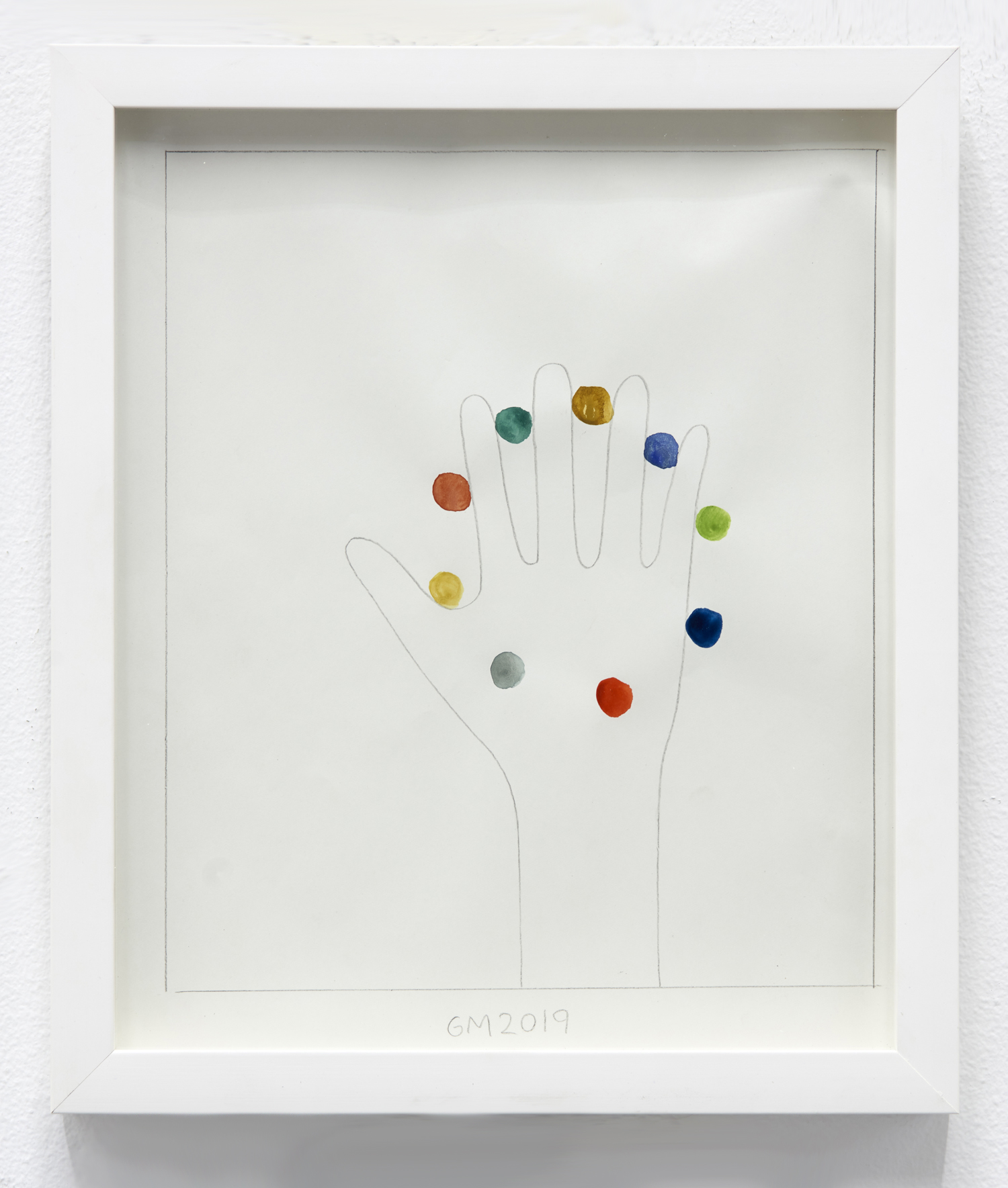 Samual Weinberg, Fingers Crossed Hiding, 2019. Watercolor on paper, 18 x 14 inches, 46 x 36 cm.