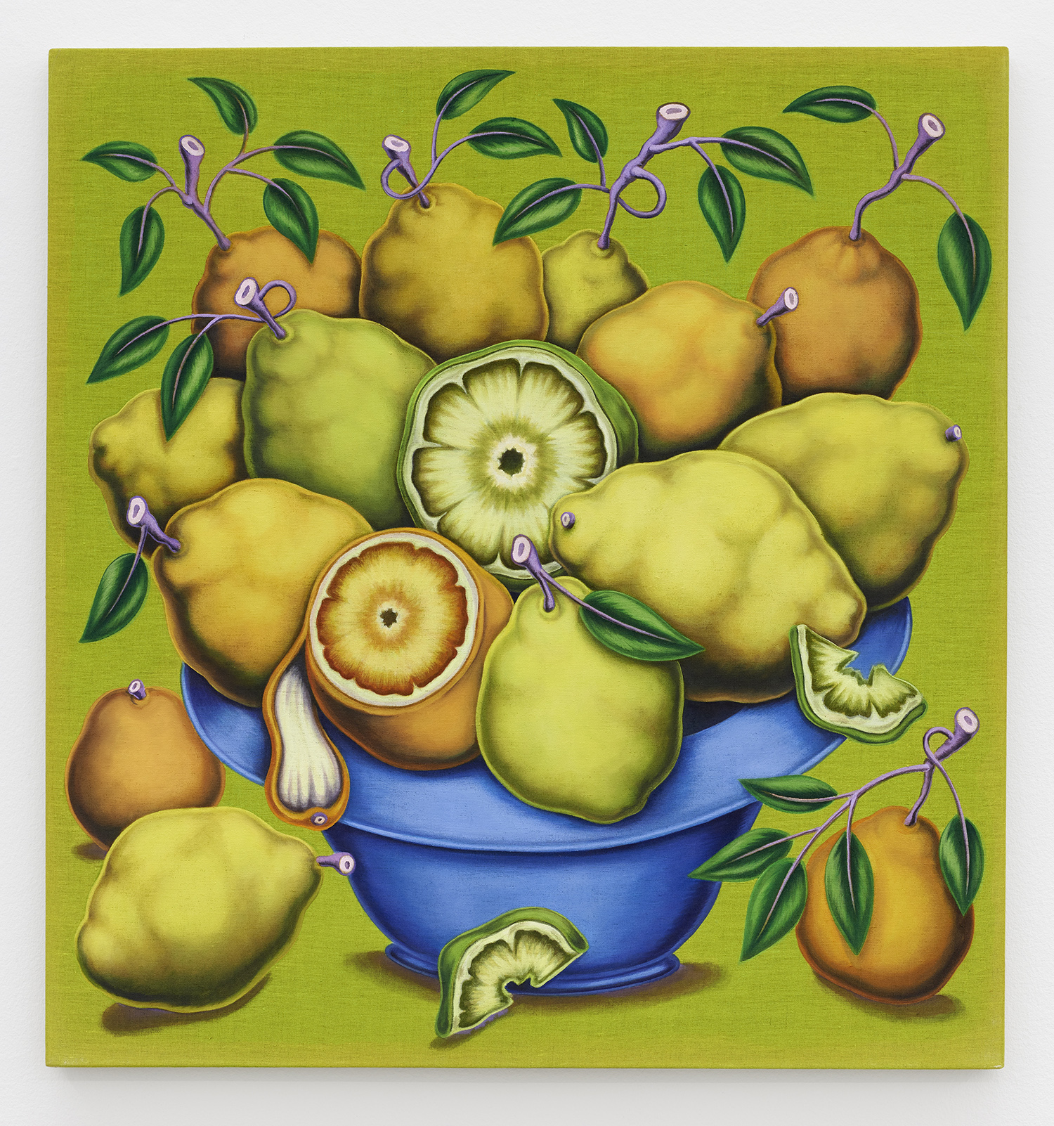 Bowl With Citrus, 2020, Textile paint on linen, 39 x 36 inches, 99 x 91 cm