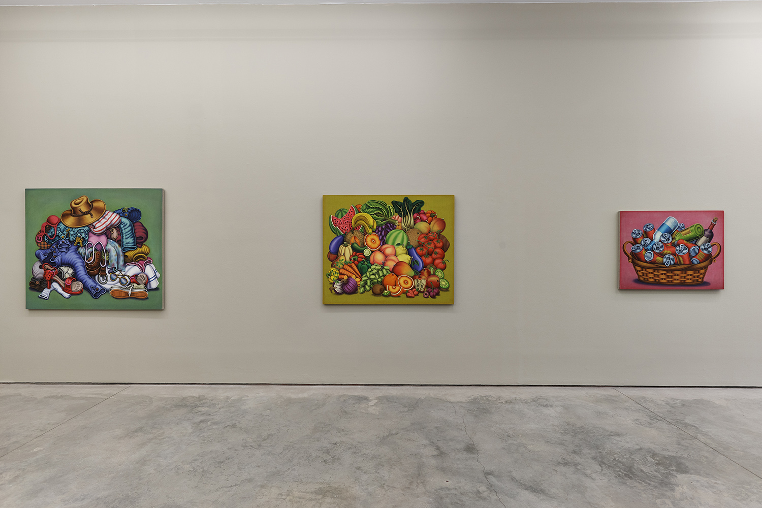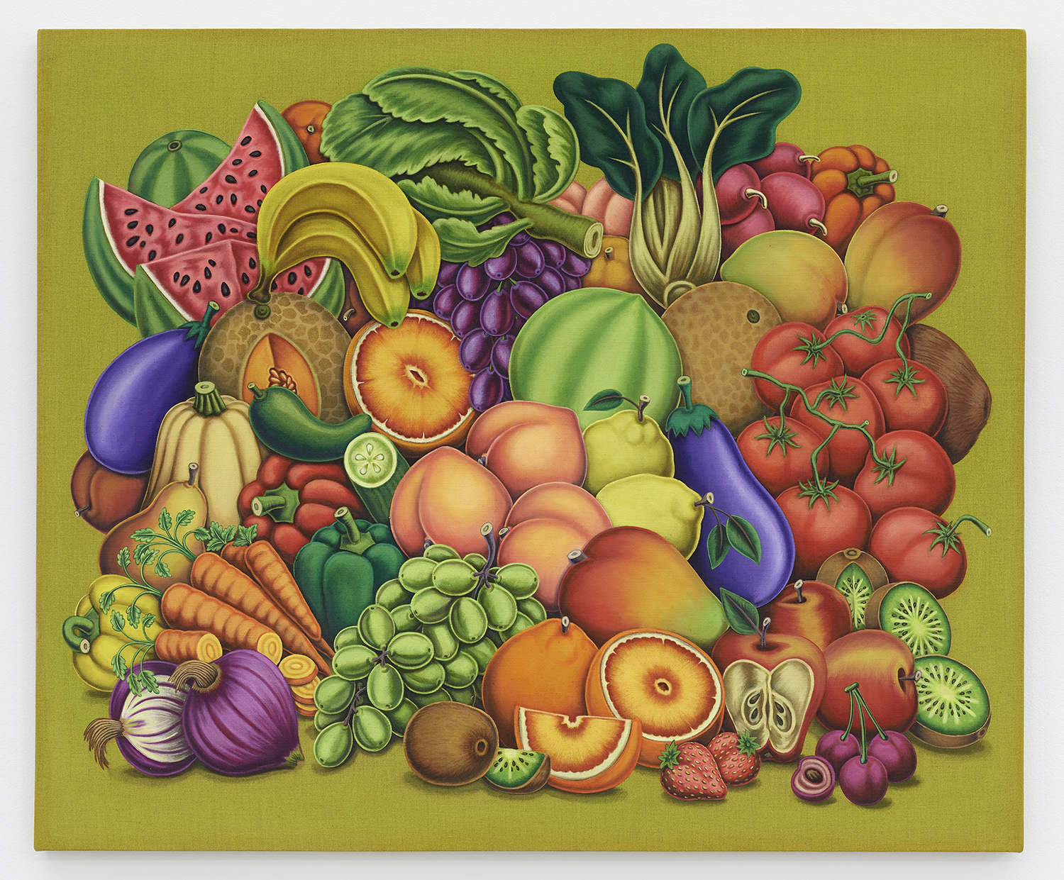 Pile of Fruit and Vegetables, 2020, Textile paint on linen, 45 x 54 inches, 114 x 137 cm