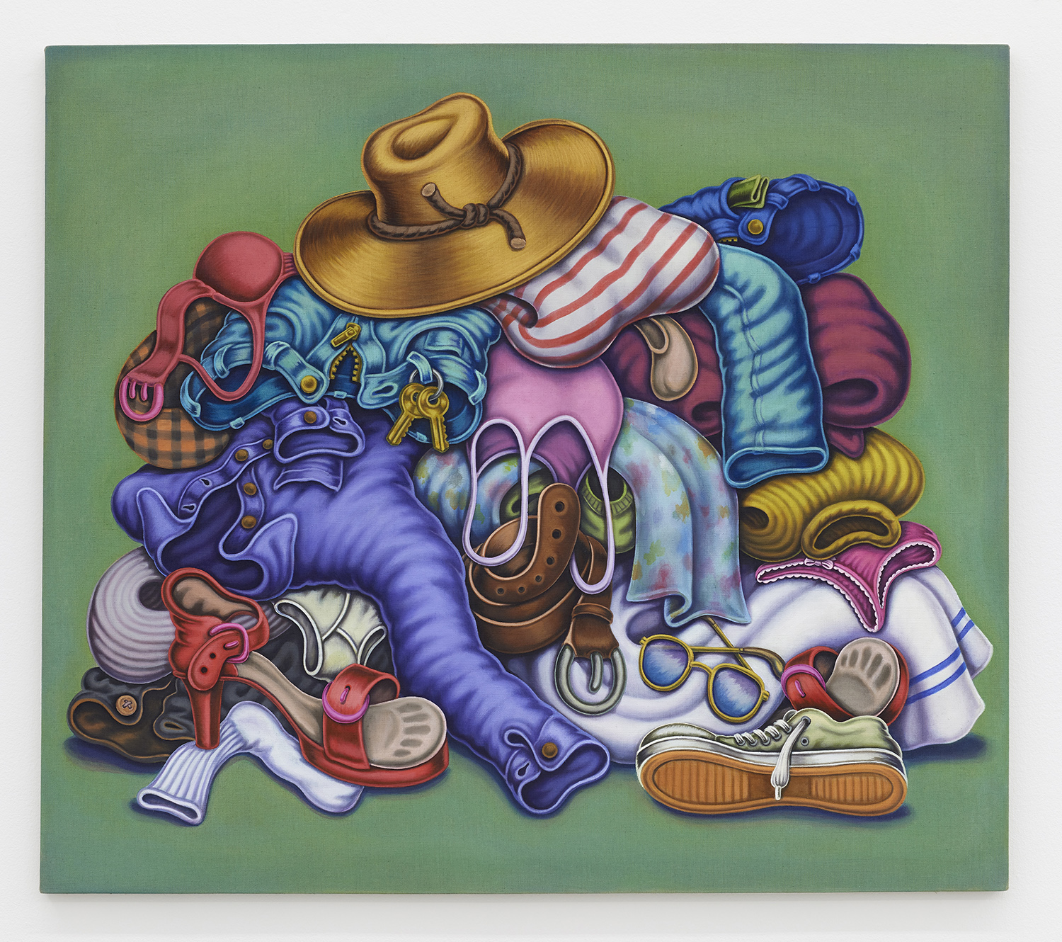 Pile of Clothes, 2020, Textile paint on linen, 50 x 57 inches, 127 x 145 cm