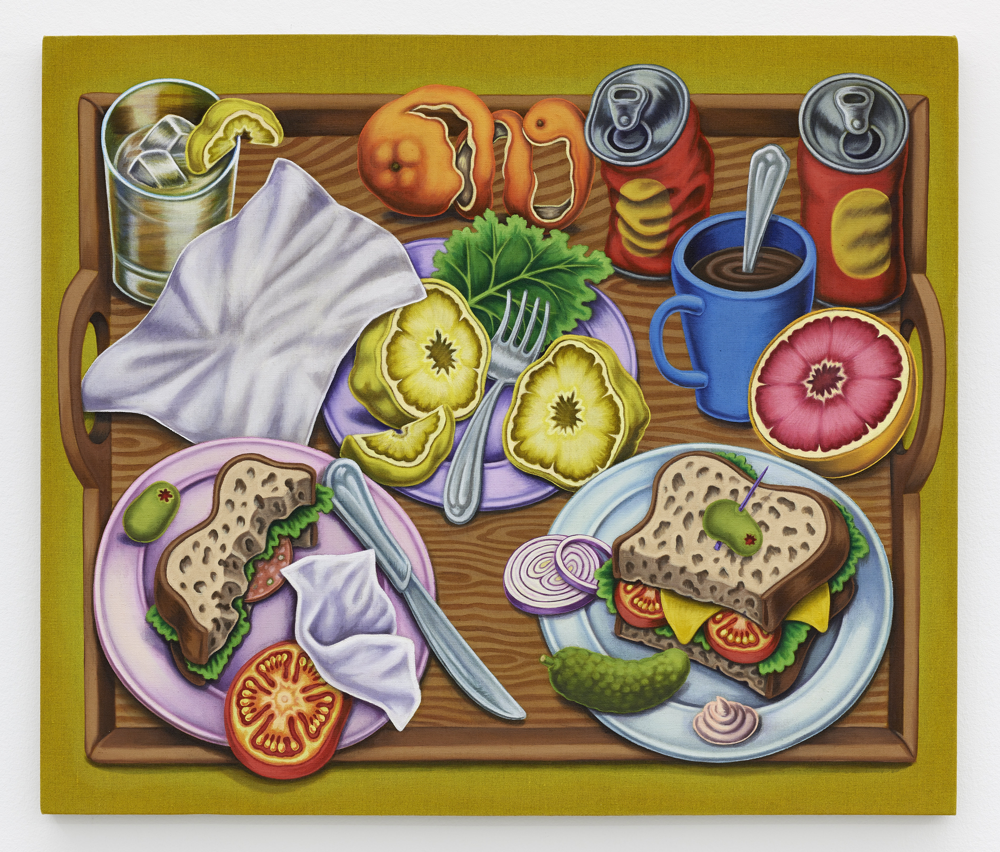 Tray With Lunch, 2020, Textile paint on linen, 35 x 40 inches, 89 x 102 cm