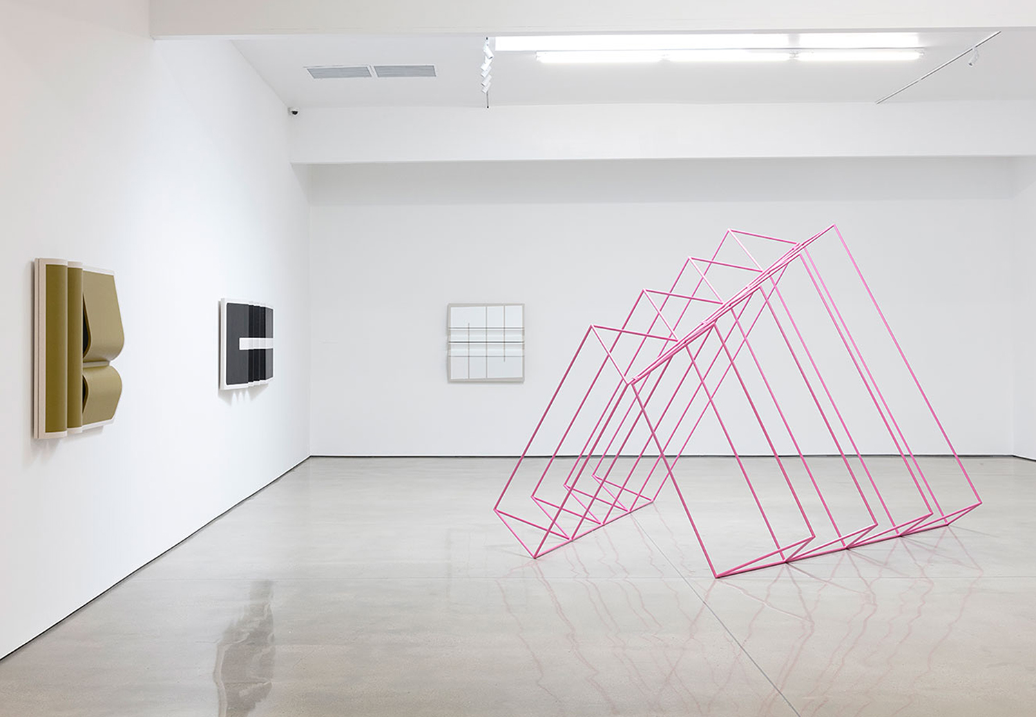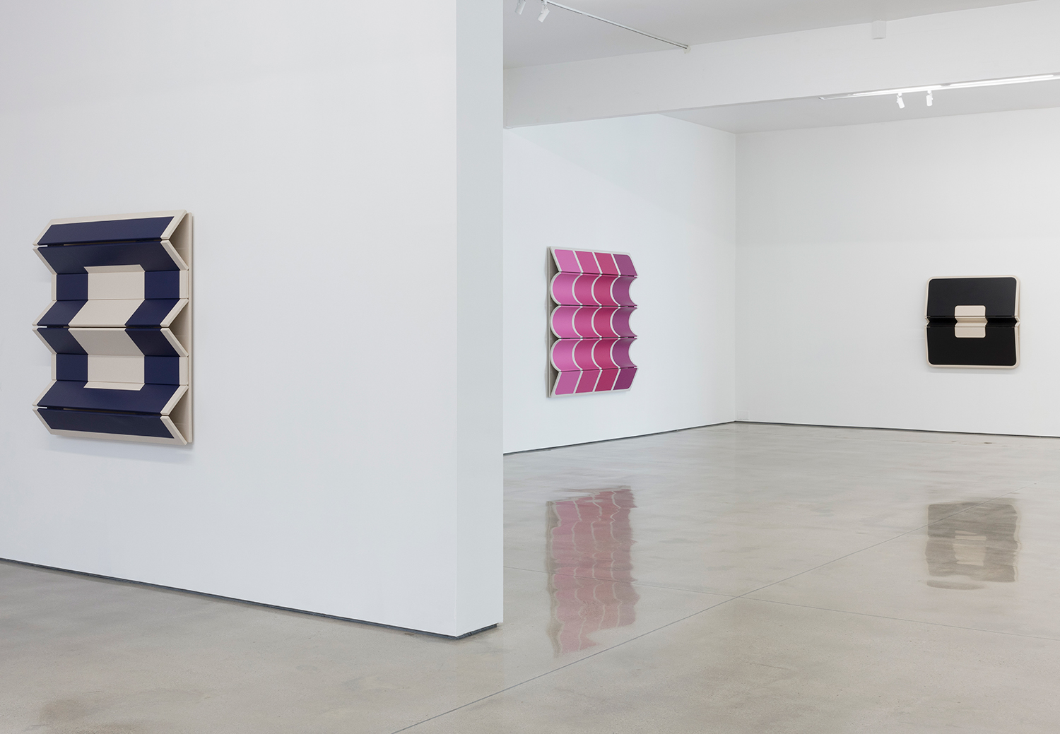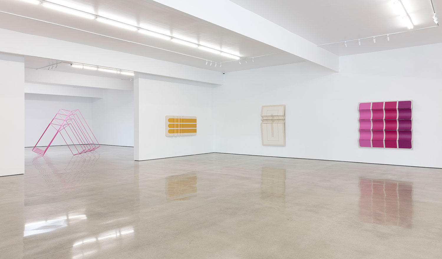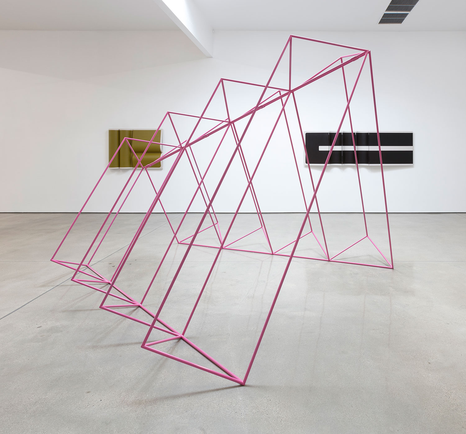 Known for his three-dimensional hangings that challenge the formalism of painting and – due to their inclusion of natural materials like cotton canvas and leather – have an almost soft, emotional take on minimalist sculpture, Moreland turns to metalwork to further engage the viewer in his own study of geometry and perception.