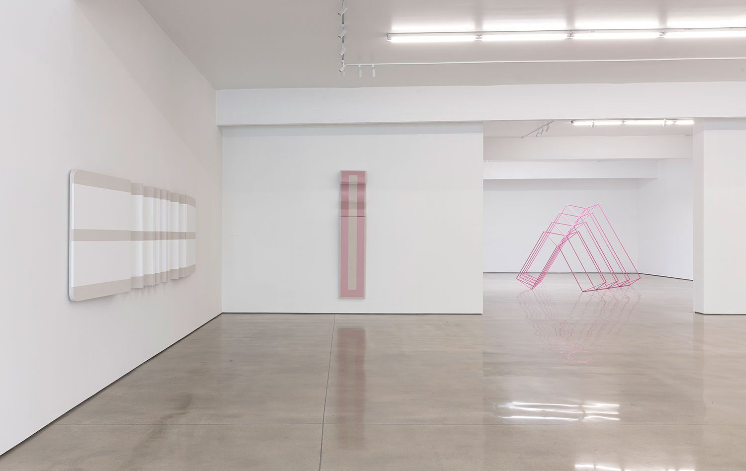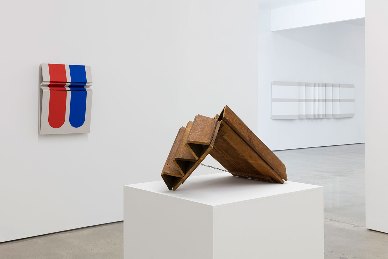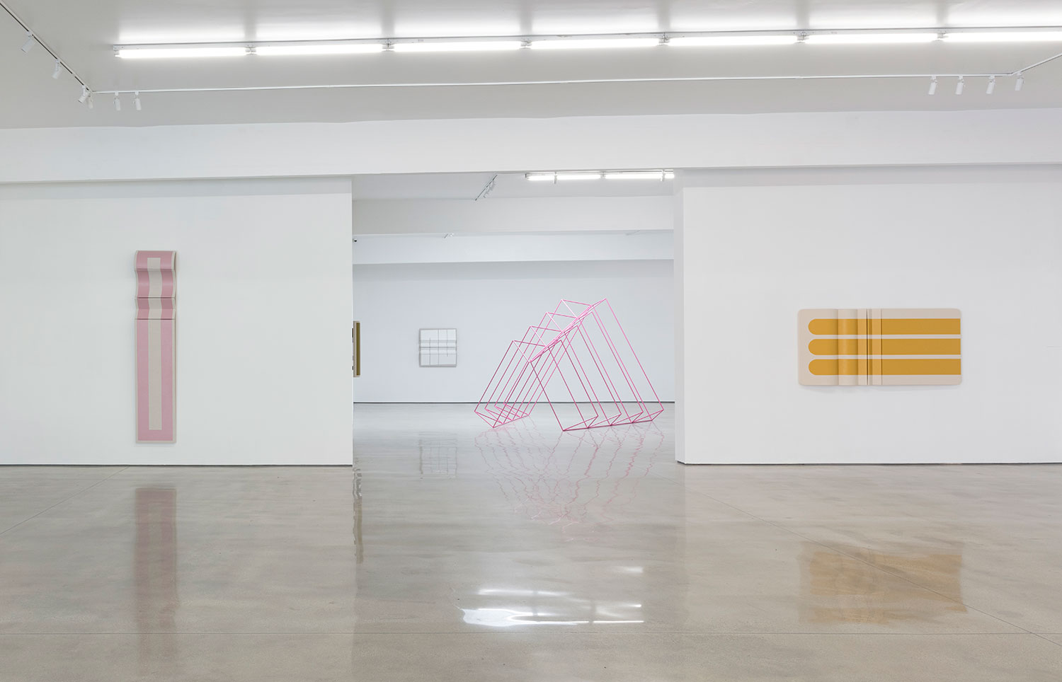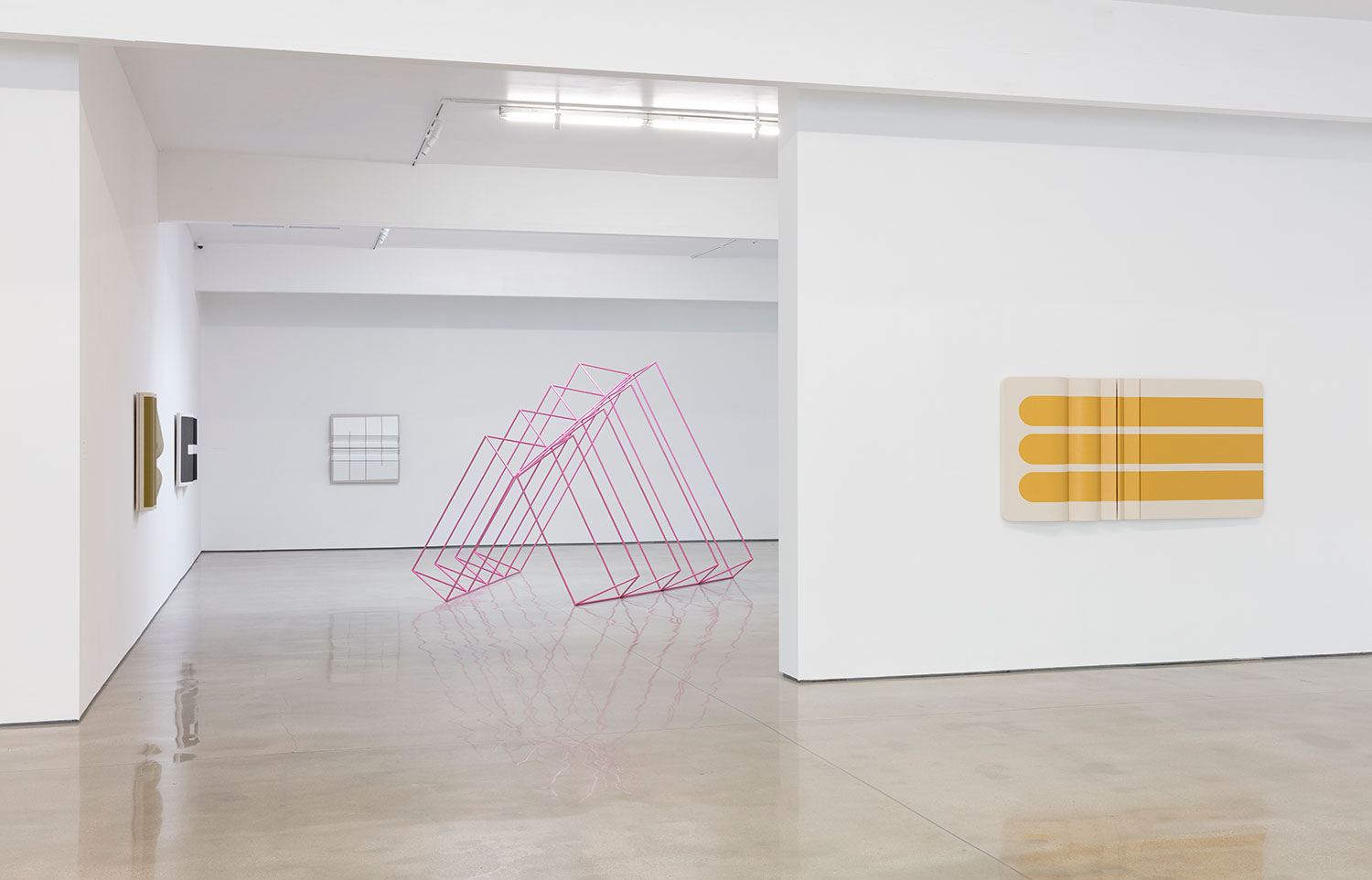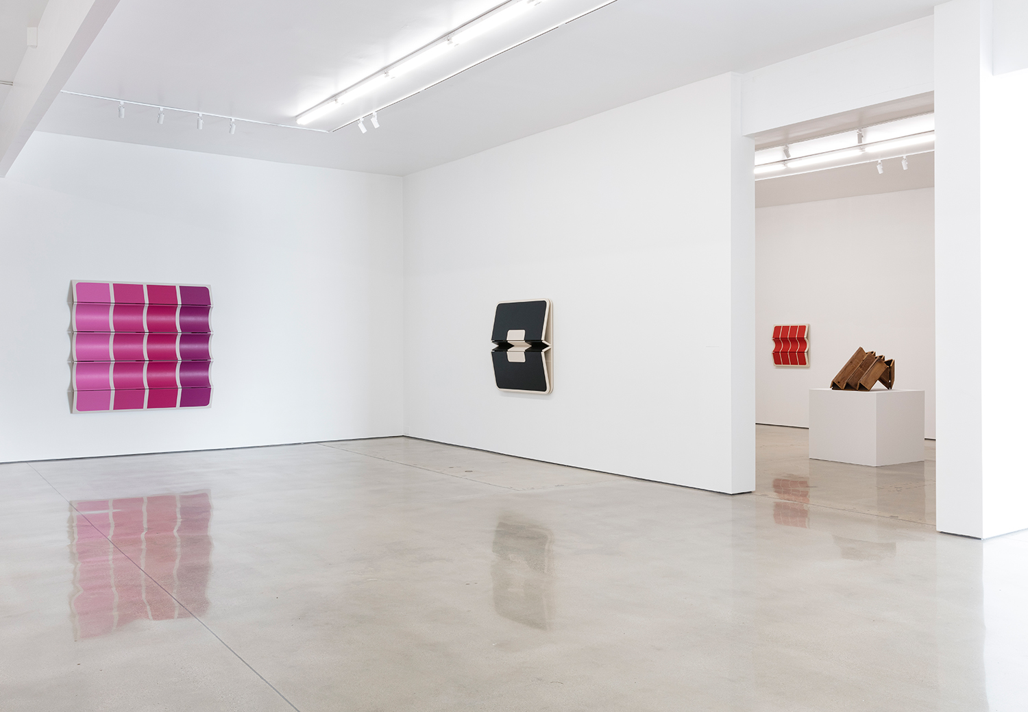 Known for his three-dimensional hangings that challenge the formalism of painting and – due to their inclusion of natural materials like cotton canvas and leather – have an almost soft, emotional take on minimalist sculpture, Moreland turns to metalwork to further engage the viewer in his own study of geometry and perception.