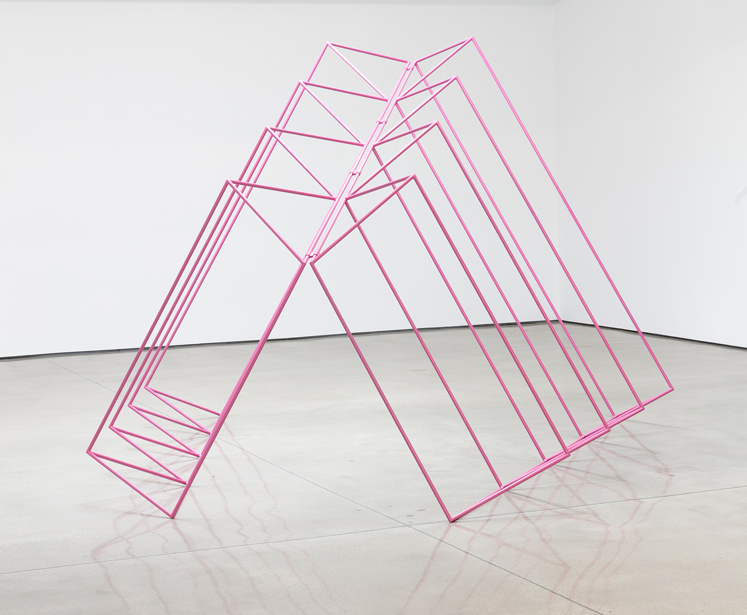 Pink Freestanding Drawing, 2022, aluminum with automotive paint, 99 x 129 x 136 inches, 244 x 419 x 399 cm.