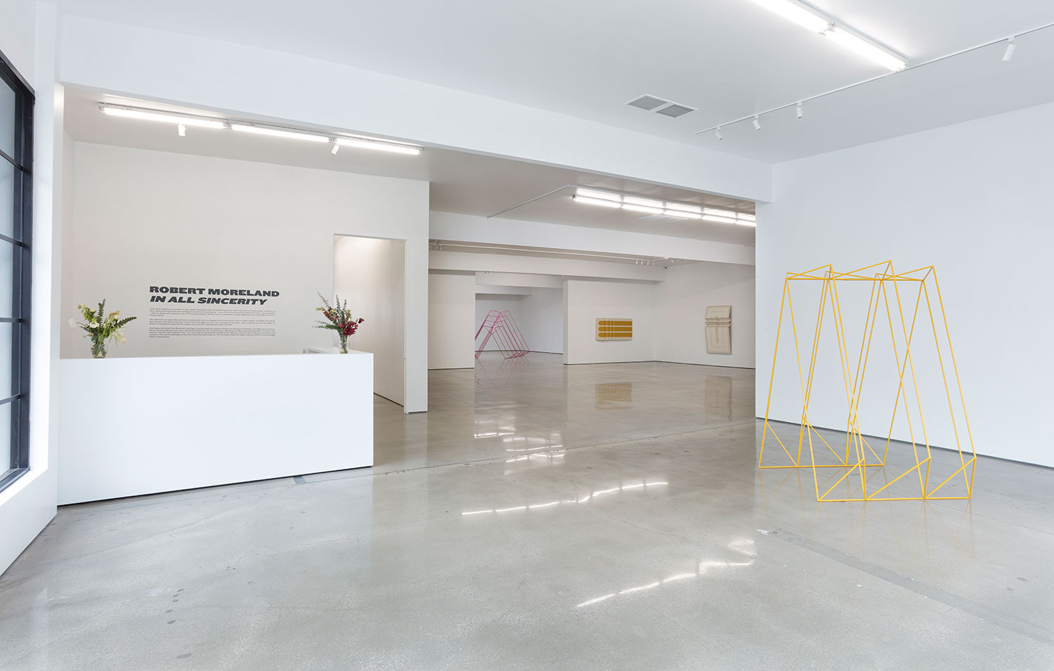 In his most expansive presentation of works to date, Robert Moreland’s third solo exhibition with The Hole grounds itself in the artist’s minimal aesthetics harmoniously with the gallery’s 8,000-square-foot industrial backdrop. Further investigating form, the artist will include a new series of free-standing sculptures of angular lines reminiscent of the folds along the profiles of his wall works. Opening November 5, 2022, the exhibition will run through December 31, 2022.