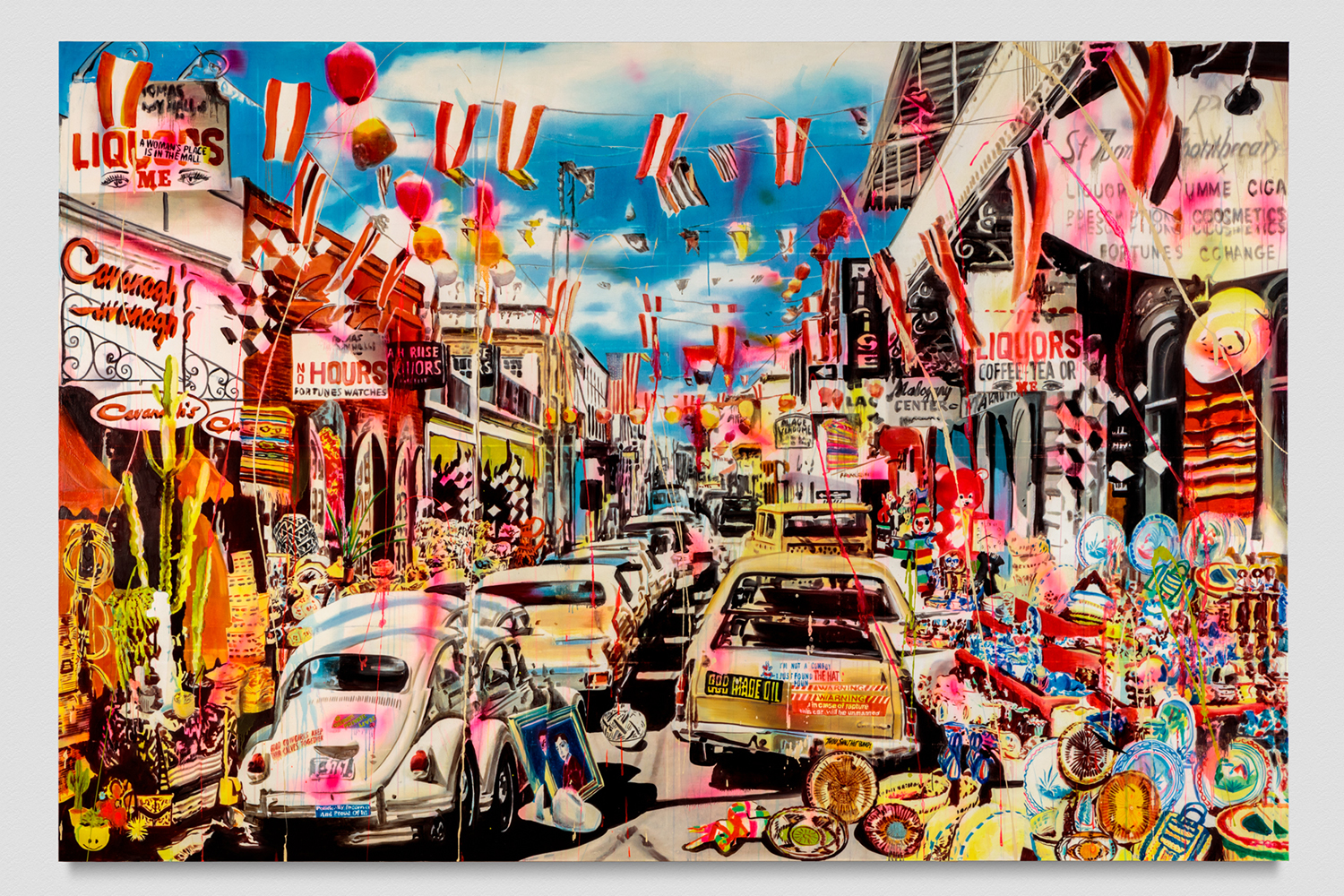 After The Rapture (Border Town), 2019. Acrylic, spray paint, photo transfer, oil and enamel on canvas, 96 x 144 inches, 244 x 366 cm