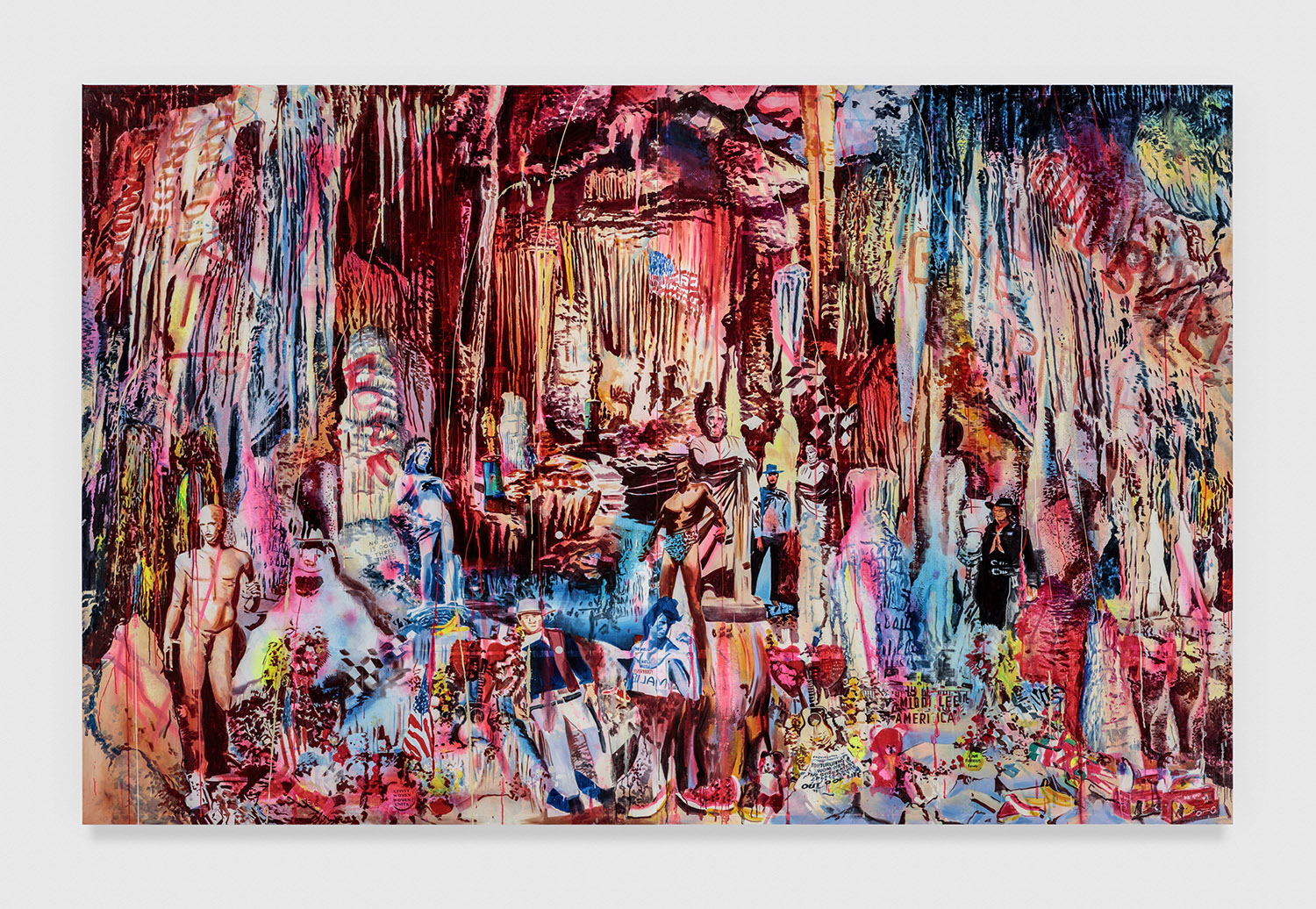Cave Of The Cancelled, 2019. Acrylic, photo transfer, oil and enamel on canvas, 108 x 168 inches, 274 x 427 cm