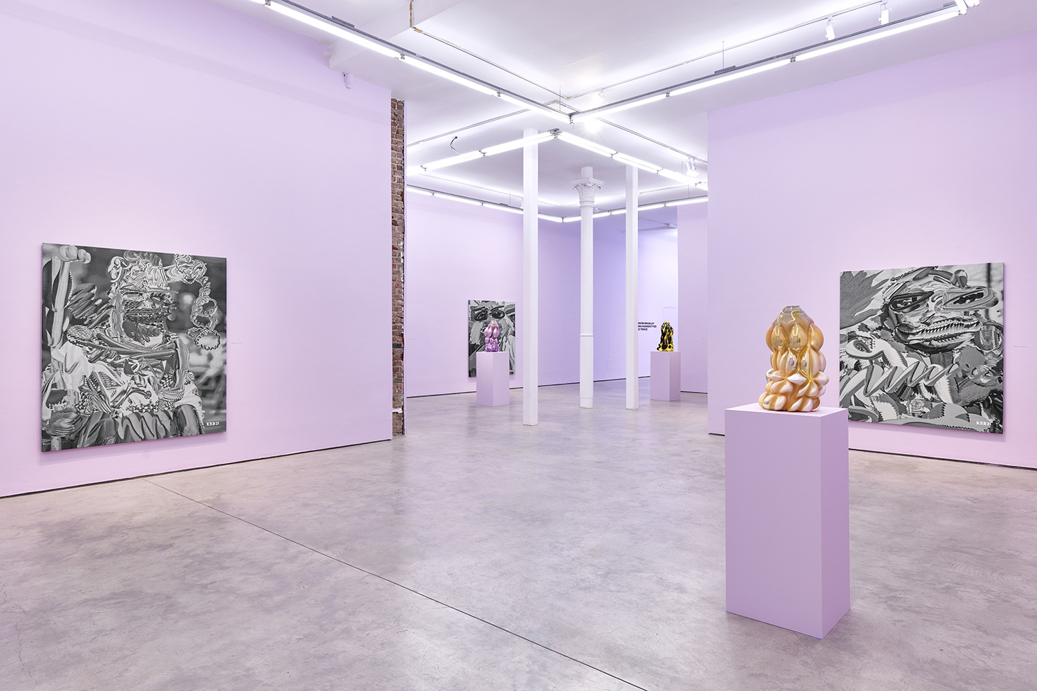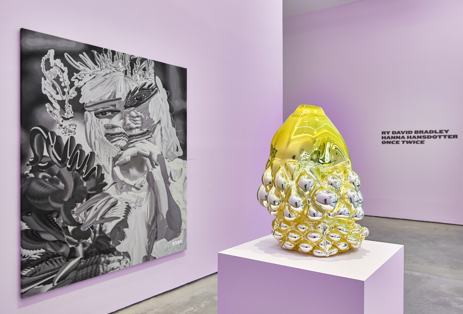 The Hole is pleased to present Once Twice, the first collaborative exhibition by Ry David Bradley and Hanna Hansdotter. Featuring Hansdotter’s blown glass sculptures and Bradley’s digital-born tapestries, Once Twice melds disparate media by the two artists, united by a shared investment in process and craft.