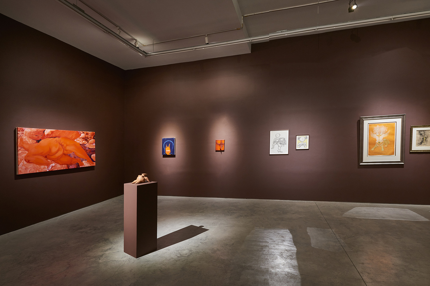 The title for the exhibition comes from an esoteric text in a half-remembered college class I took in 2002, “Surrealism and Feminism.” A memorable vagina euphemism, the phrase suggests secret feminine pleasure, secret feminine knowledge, perhaps. Certainly since 2002 female surrealists have been foregrounded making once-obscure names like Kay Sage, Unica Zurn, Claude Cahun, Leonora Carrington or Remedios Varo canon. In the past two years alone there have been five major museum shows focused on female surrealists (shows whose wall colors I’ve borrowed for this exhibition actually) including a great show currently on hold at the Schirn Kunsthalle. This formerly-cult college class topic is now at the center, the market has caught up with the critics, curators and scholars, and now many major collections go deep into both classical Surrealism and practicing artists today with a surrealist streak.