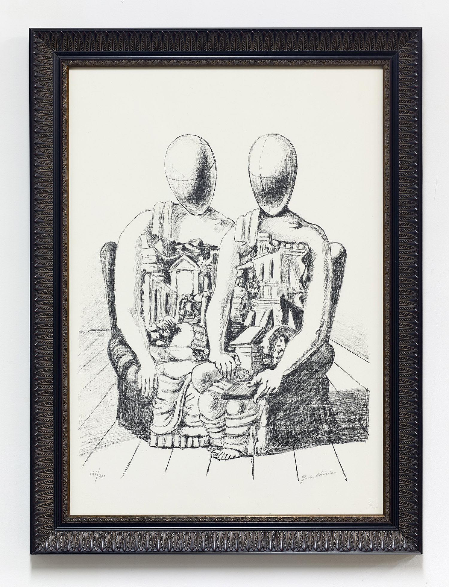 Giorgio de Chirico, Gli Archeologi, 1969. Lithograph, 28 x 20 inches, 70 x 50 cm, framed Dimensions: 32 x 23.5 inches, 81 x 60 cm, Edition 146/300