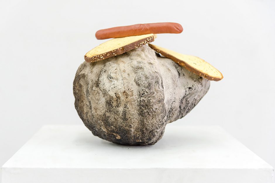 Tony Matelli, Bread Head, 2018. Cast stone, painted bronze, 11 x 9 x 10 inches, 28 x 23 x 25 cm