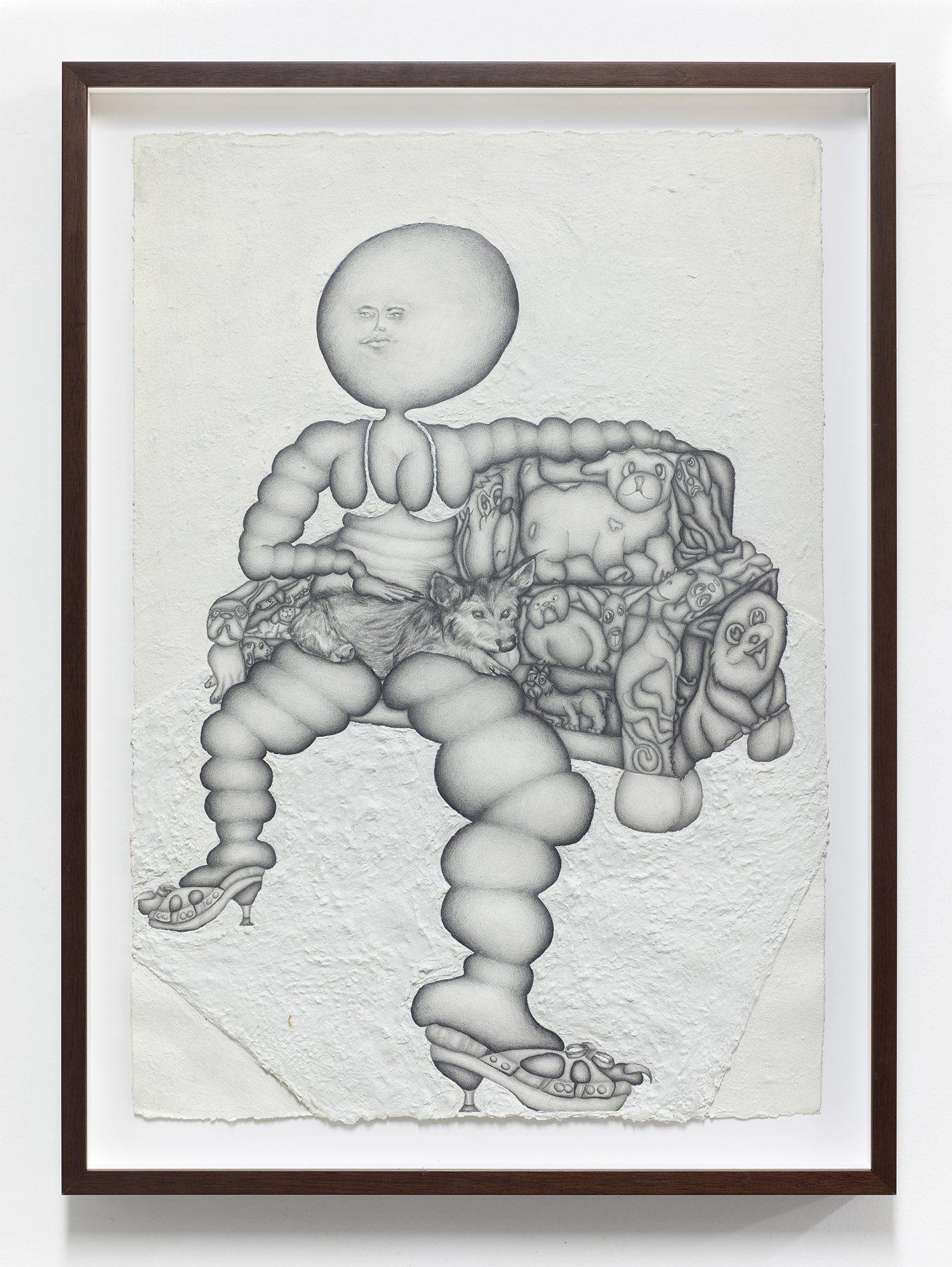 Ali Bonfils, Lap Dog, 2018. Graphite and fiber paste on paper, 21 x 14 inches, 53 x 36 cm, framed dimensions: 26 x 19 inches, 66 x 47 cm