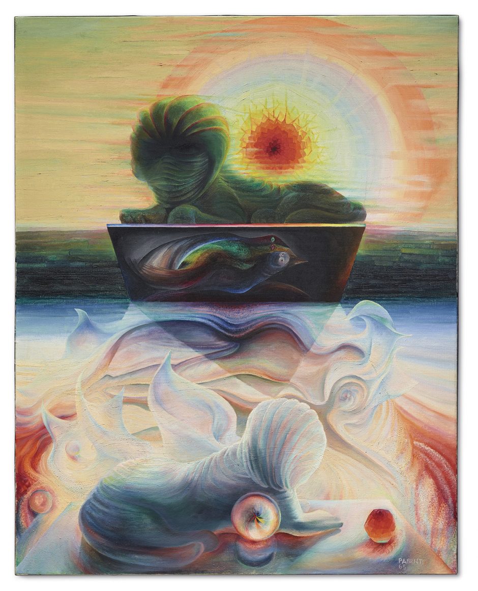 Mimi Parent, Au Lion d’Or, 1965. Oil on canvas, 36 x 29 inches, 91 x 74 cm