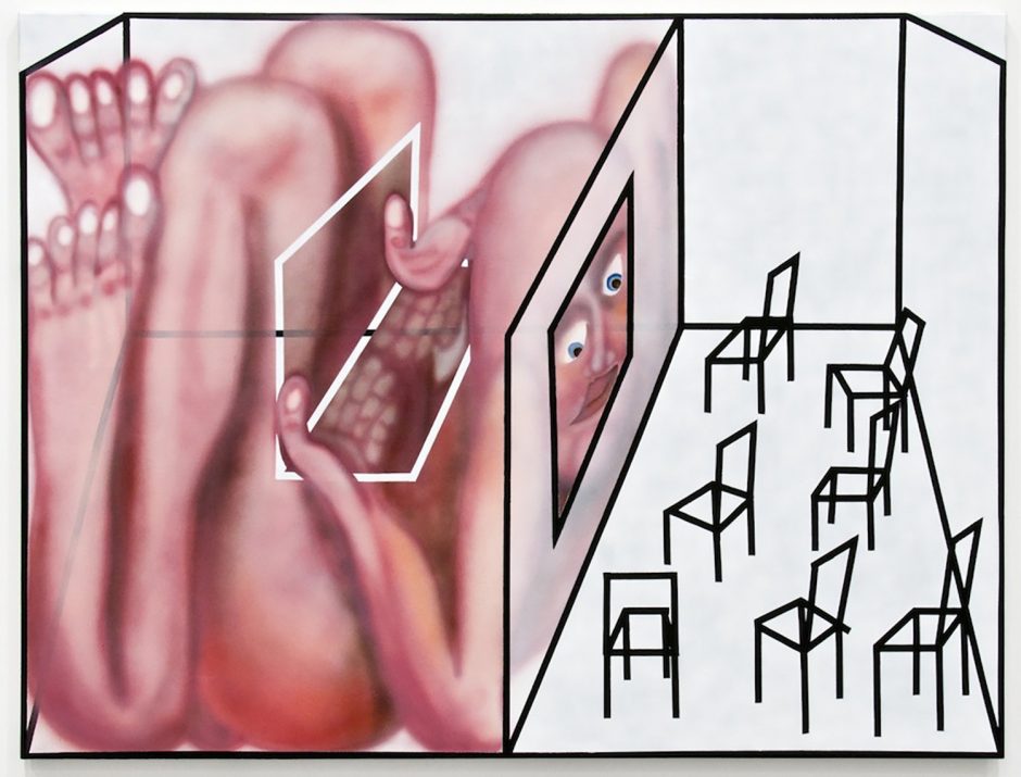 Emily Mae Smith, A Reckoning, 2018. Oil on linen, 67 x 51 inches, 170 x 130 cm