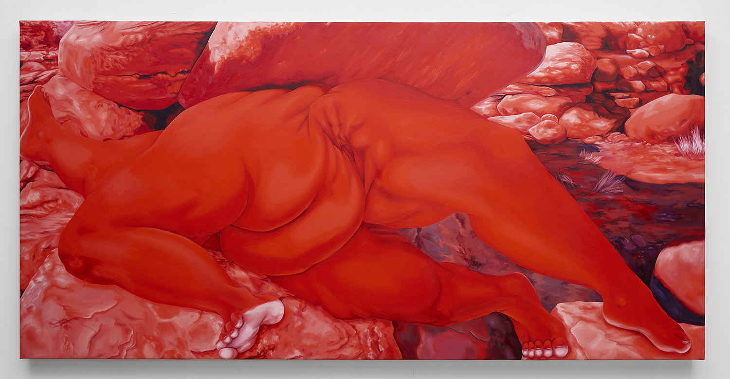 Brittney Leeanne Williams, Naomi and Ruth: Mitosis, 2020. Oil on canvas, 36 x 72 inches, 91 x 183 cm