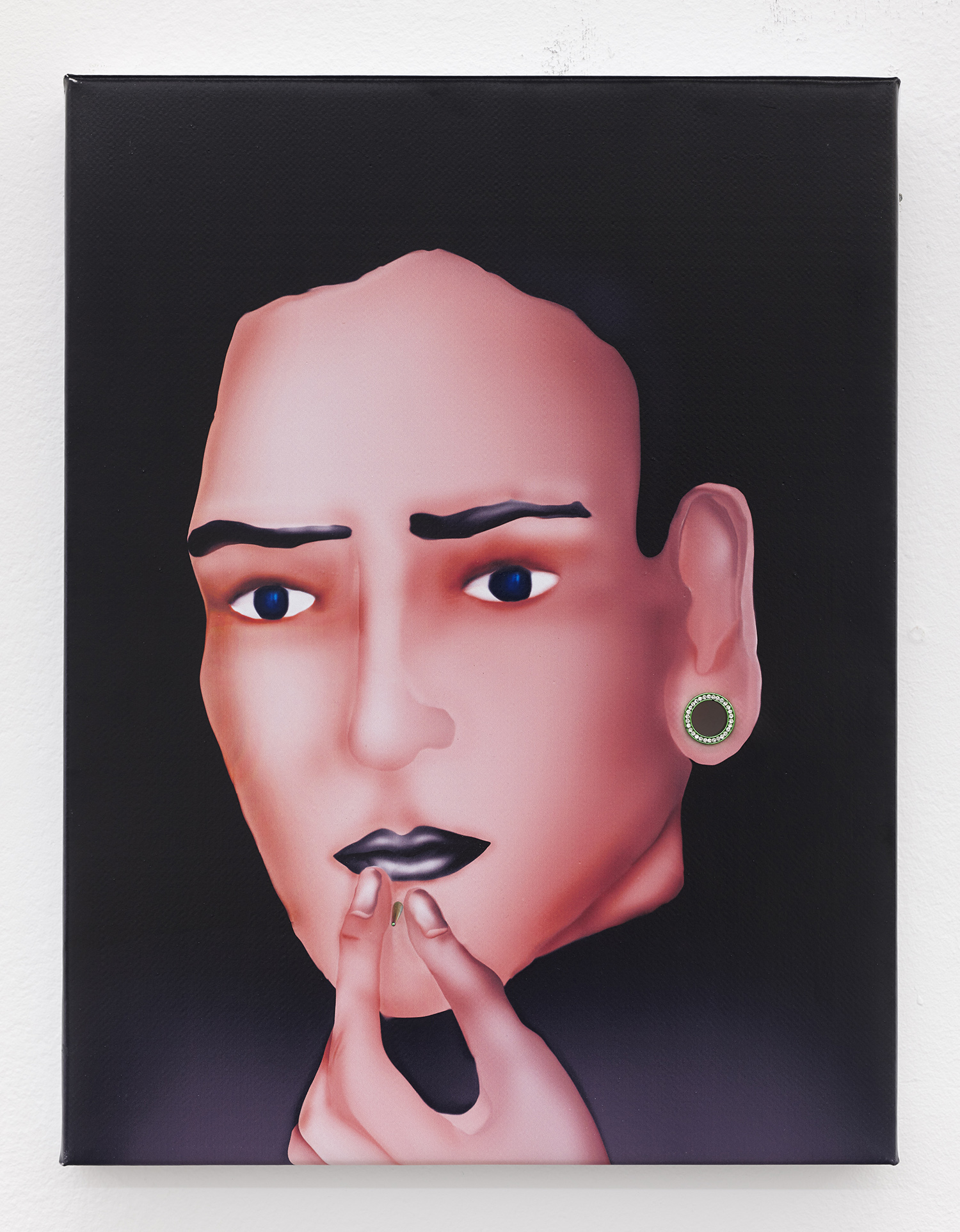 Louisa Gagliardi, Pierced Chin and Ear, 2015. Ink and jewelry on PVC, 17 x 11 inches, 43 x 33 cm
