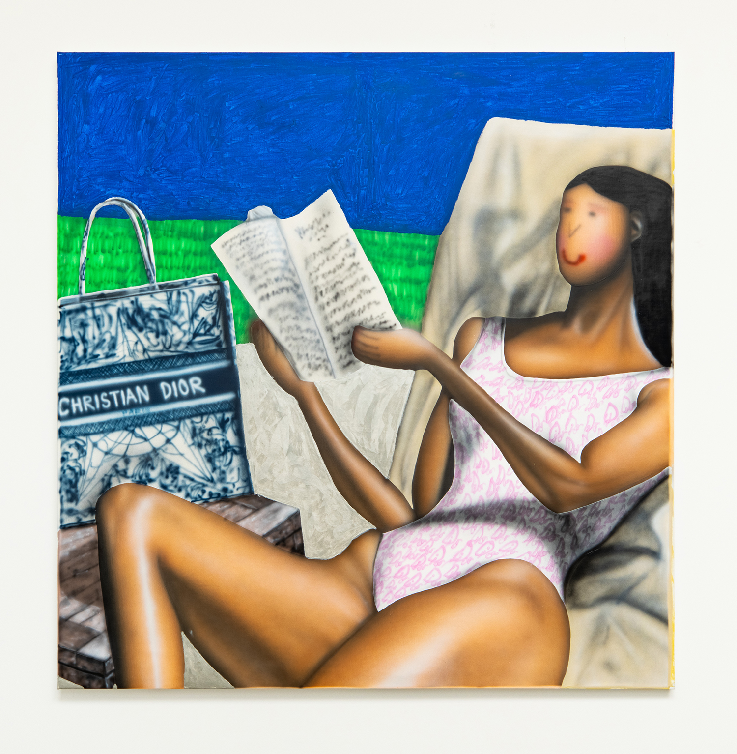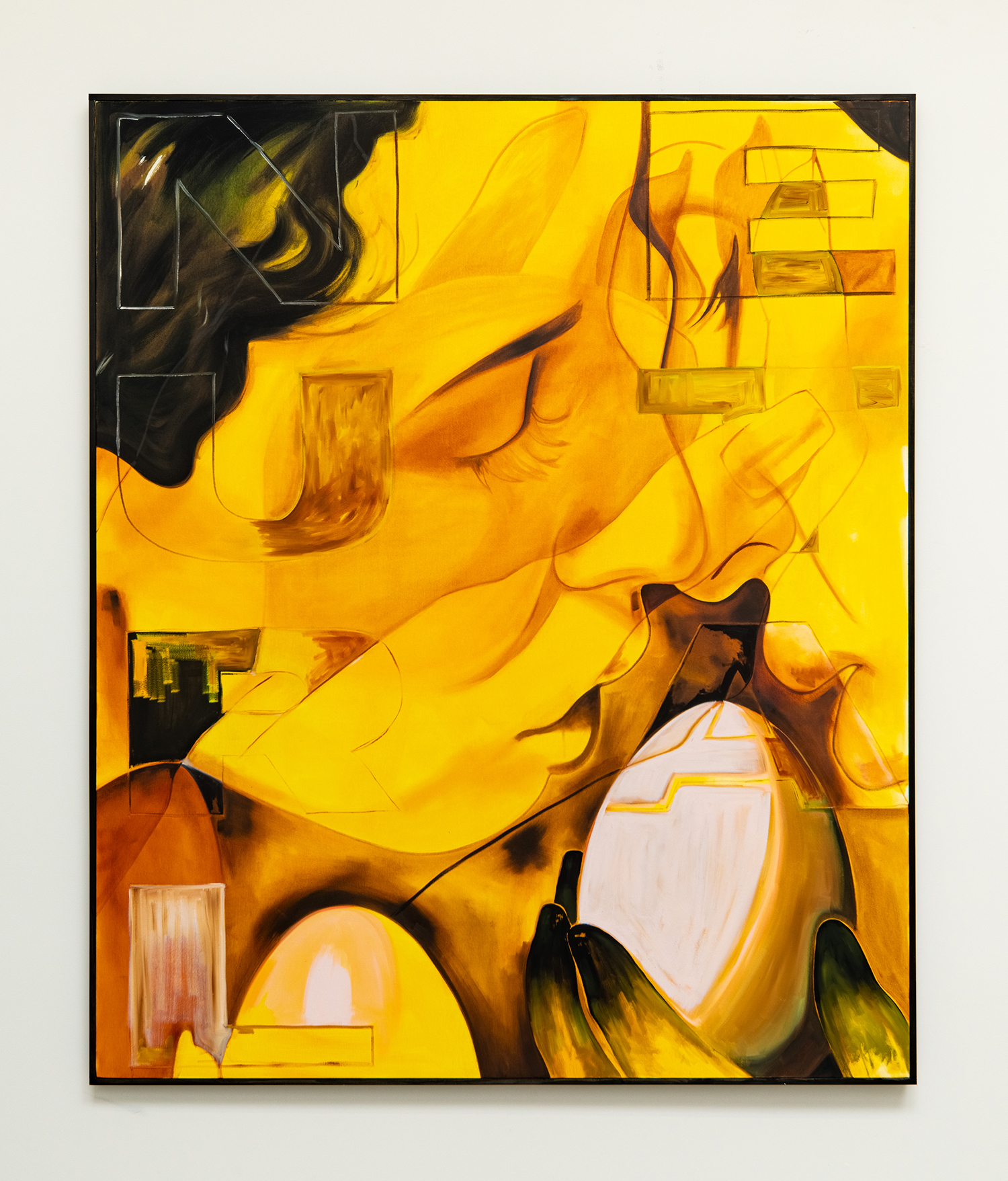 Brittany Tucker, Toasting Those Buns, Acrylic and spray paint on canvas, 83 x 63 inches, 211 x 160 cm.