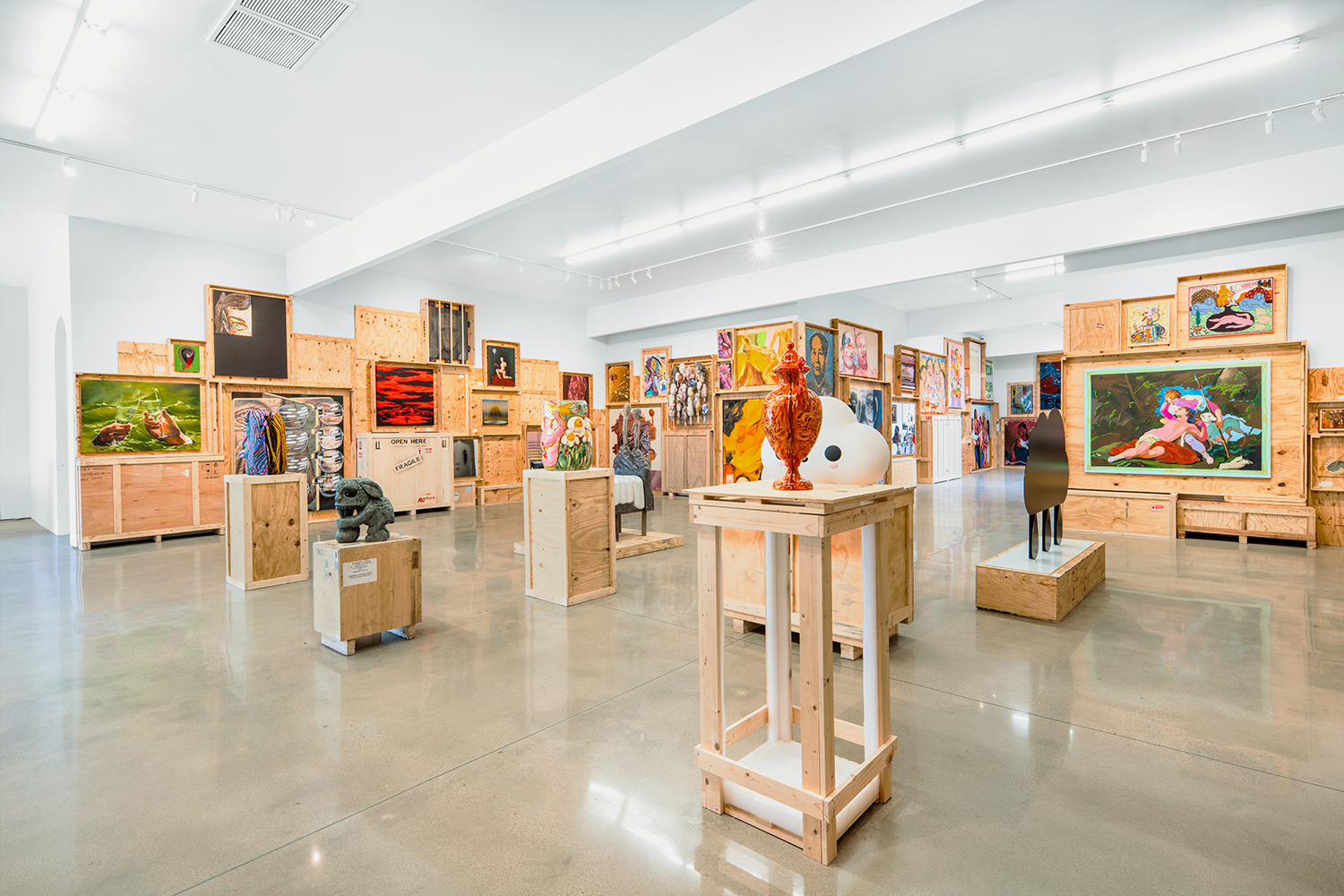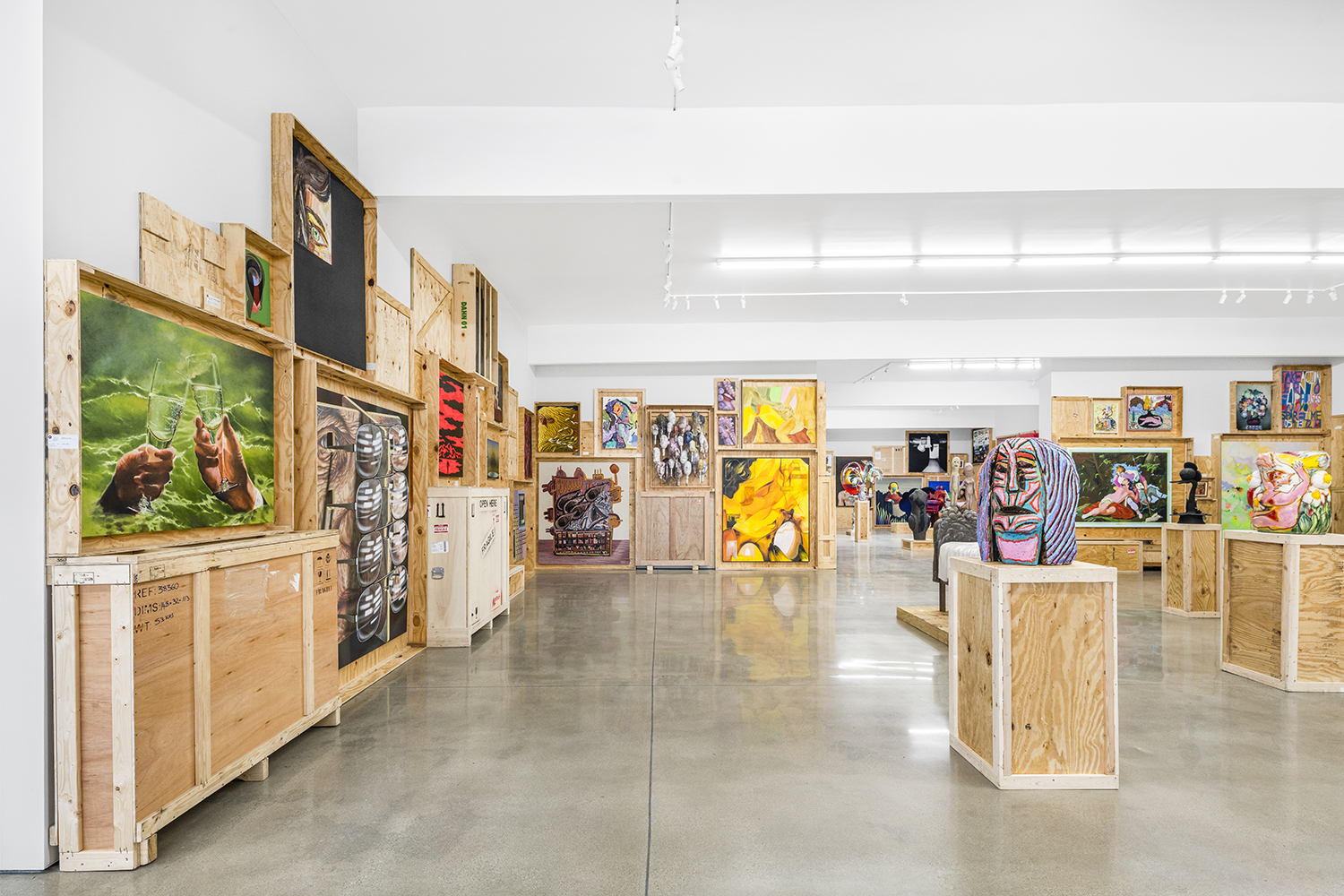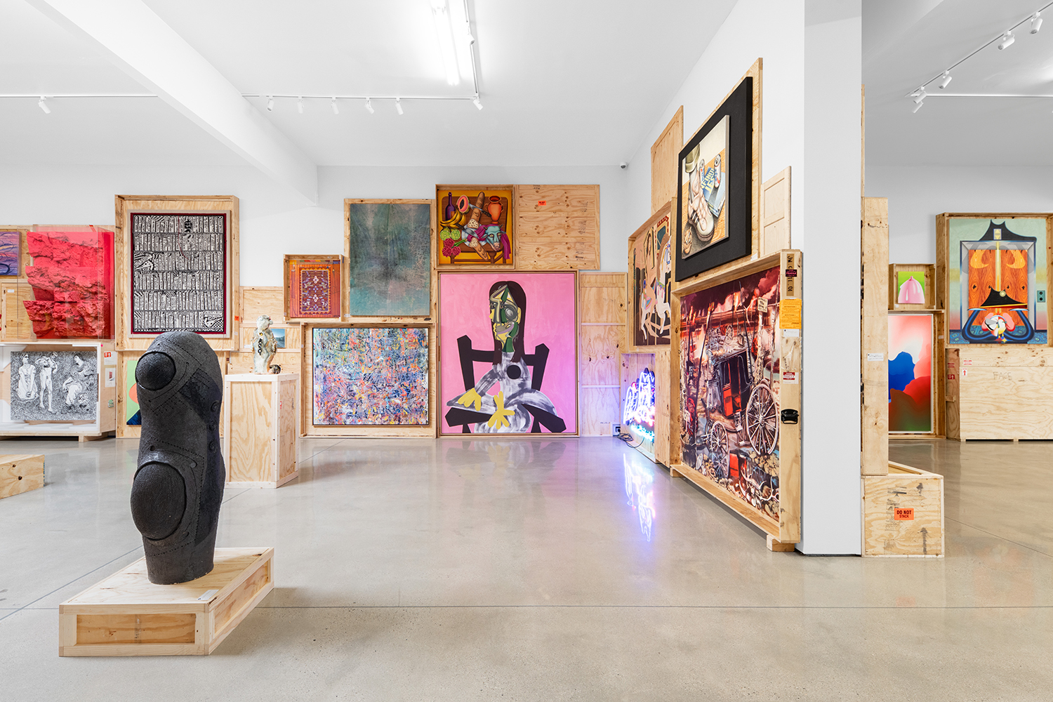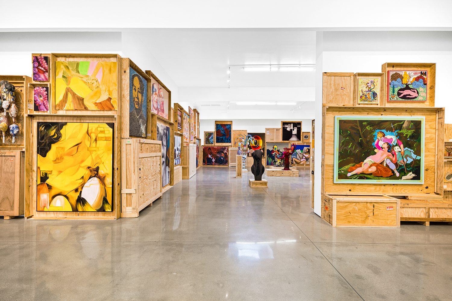 We stack the crates to the ceiling and open them! This long-standing curatorial project came from the grind of art fairs where we would uncrate an artwork, have it out for just a few days, and then pack it back up in its little wood box. It came from selling art to collectors who had the works ship directly to their storage; and it came from working at art museums where I got to poke around the amazing racks where true masterpieces were squirreled away from the public eye.