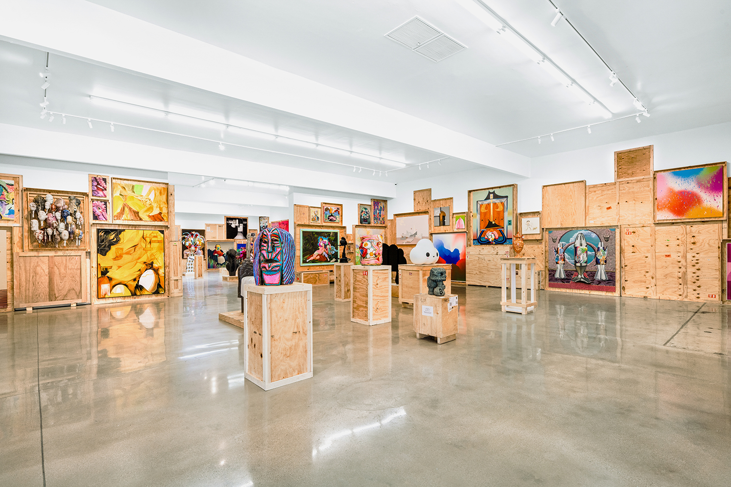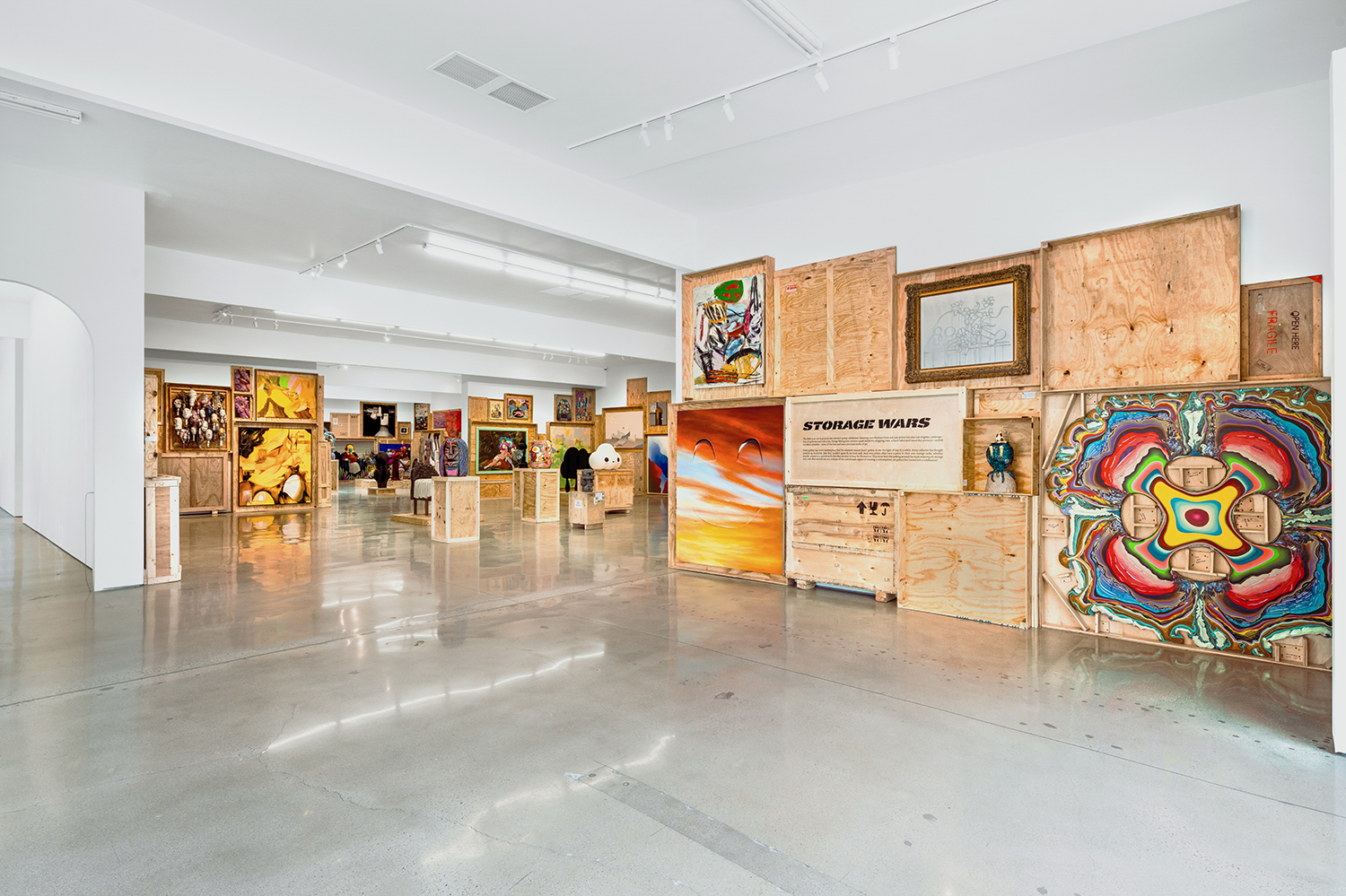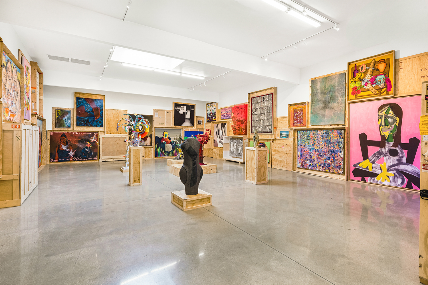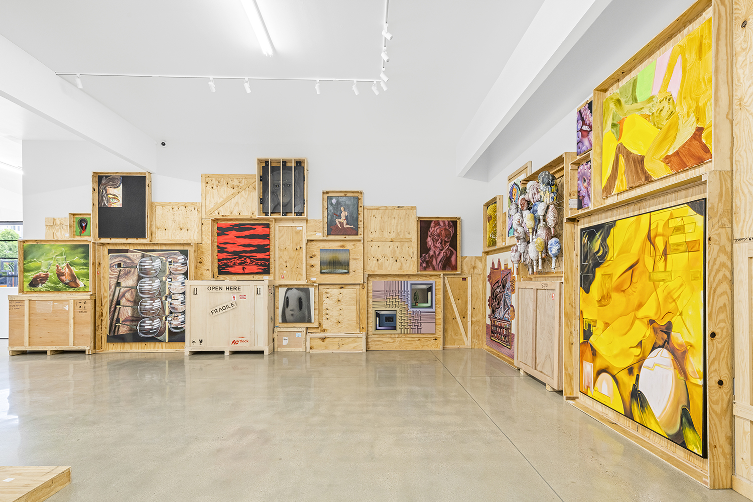 We stack the crates to the ceiling and open them! This long-standing curatorial project came from the grind of art fairs where we would uncrate an artwork, have it out for just a few days, and then pack it back up in its little wood box. It came from selling art to collectors who had the works ship directly to their storage; and it came from working at art museums where I got to poke around the amazing racks where true masterpieces were squirreled away from the public eye.