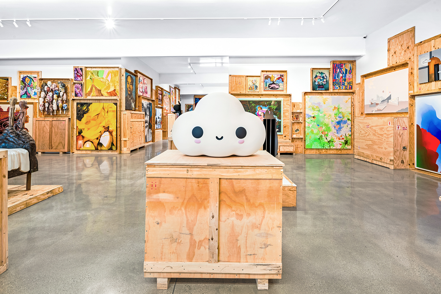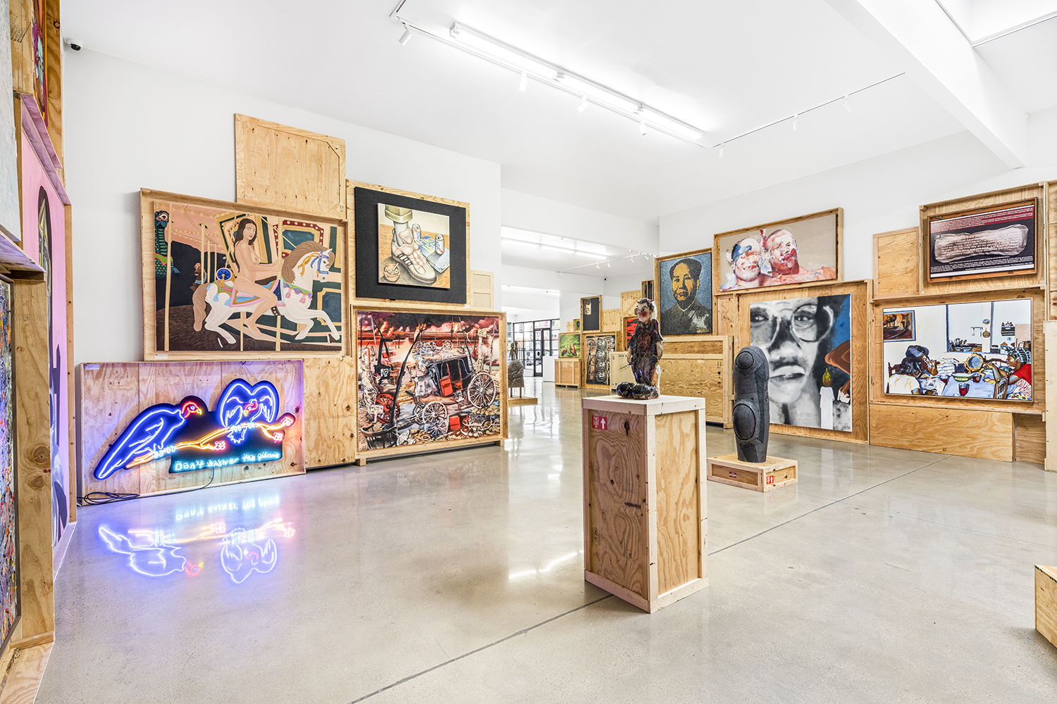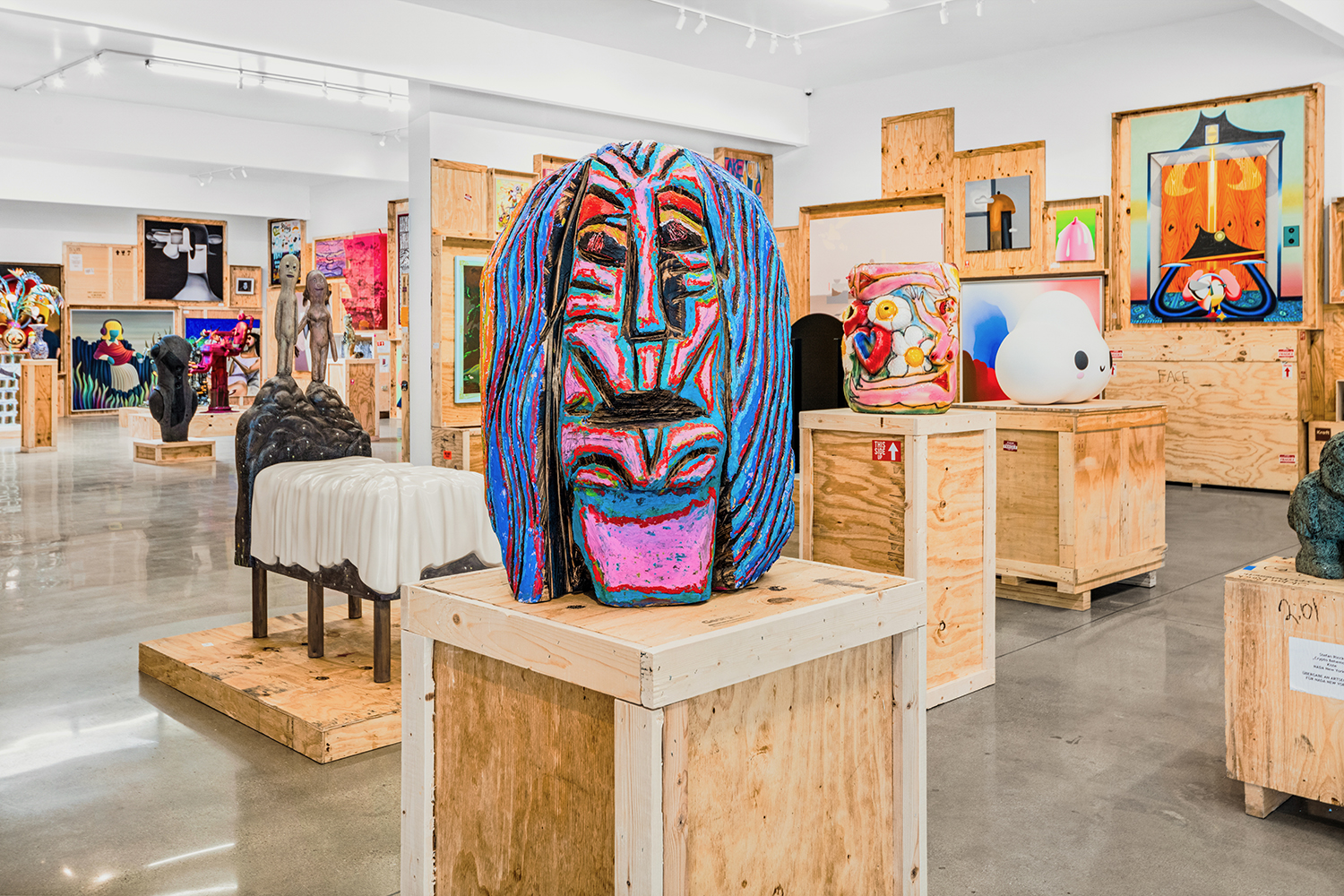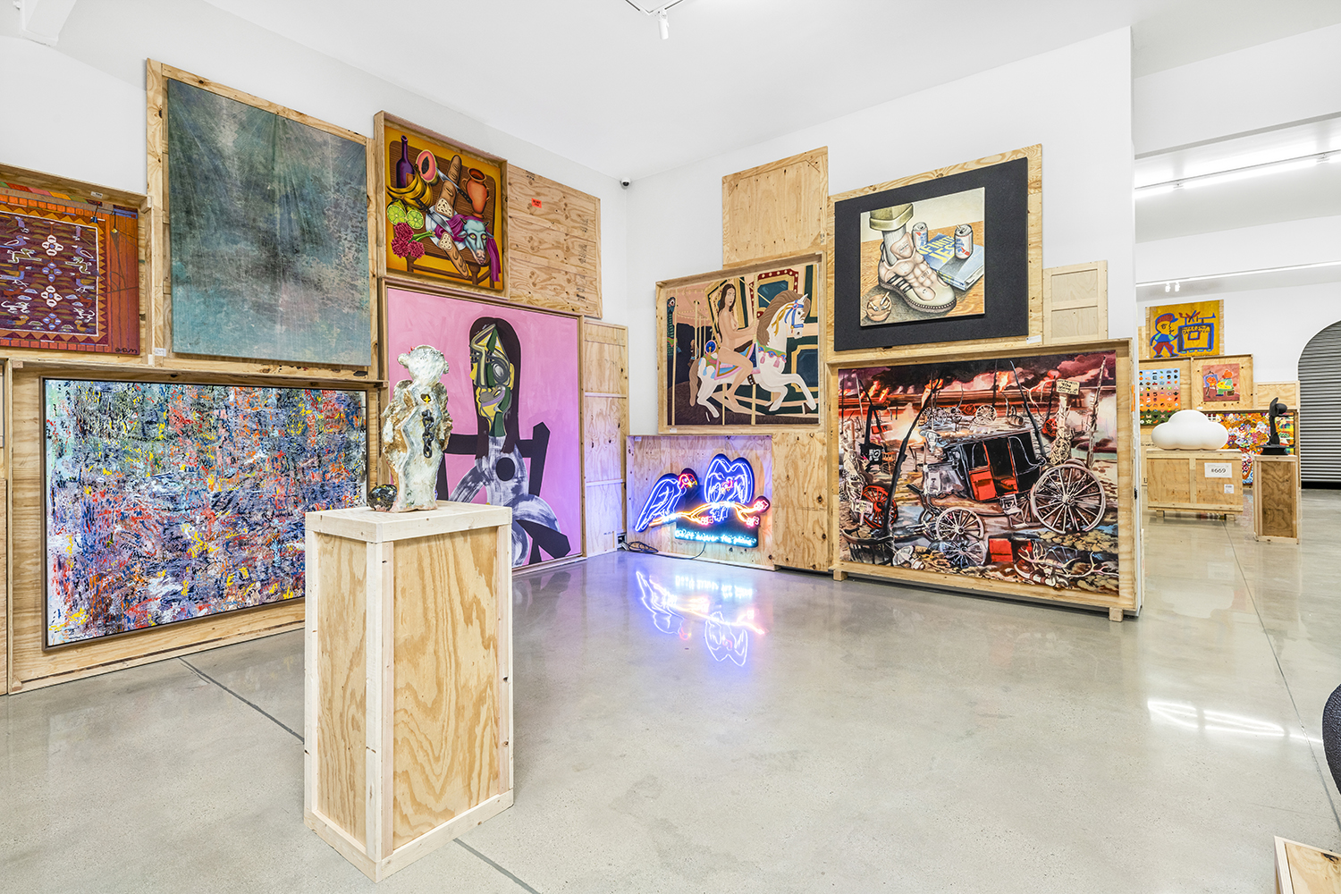 We stack the crates to the ceiling and open them! This long-standing curatorial project came from the grind of art fairs where we would uncrate an artwork, have it out for just a few days, and then pack it back up in its little wood box. It came from selling art to collectors who had the works ship directly to their storage; and it came from working at art museums where I got to poke around the amazing racks where true masterpieces were squirreled away from the public eye.