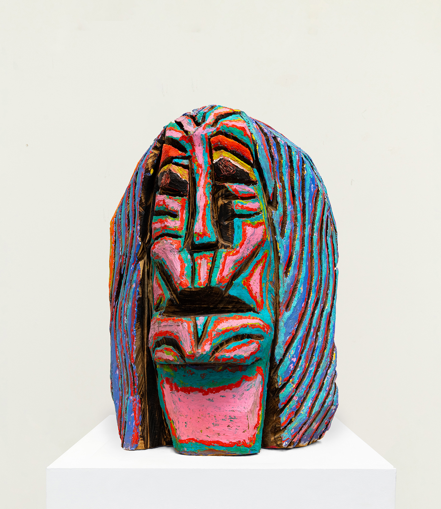 Ryan Schneider, Words Chosen Wisely, 2021, Oil pigment on burnt Torrey pine, 25 x 17 x 16 inches, 64 x 43 x 41 cm.