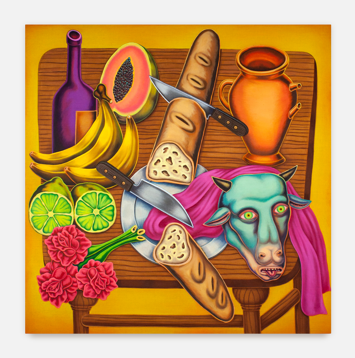 Eric Yahnker, Toast, 2022, Oil on canvas, 36 x 48 inches, 91 x 122 cm.