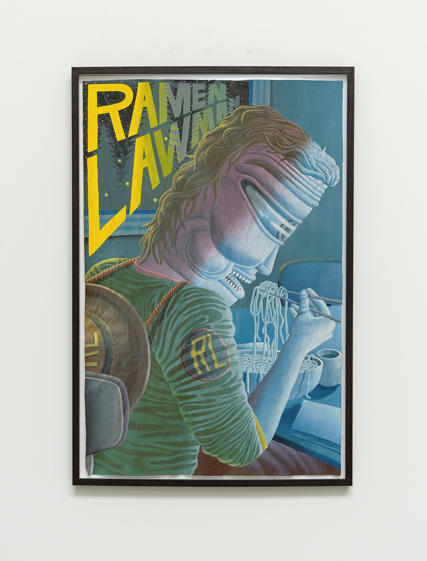 Samuel Weinberg, Ramen Lawman, 2020-2023, Gouache on paper, 35 x 23 inches, 89 x 58 cm.