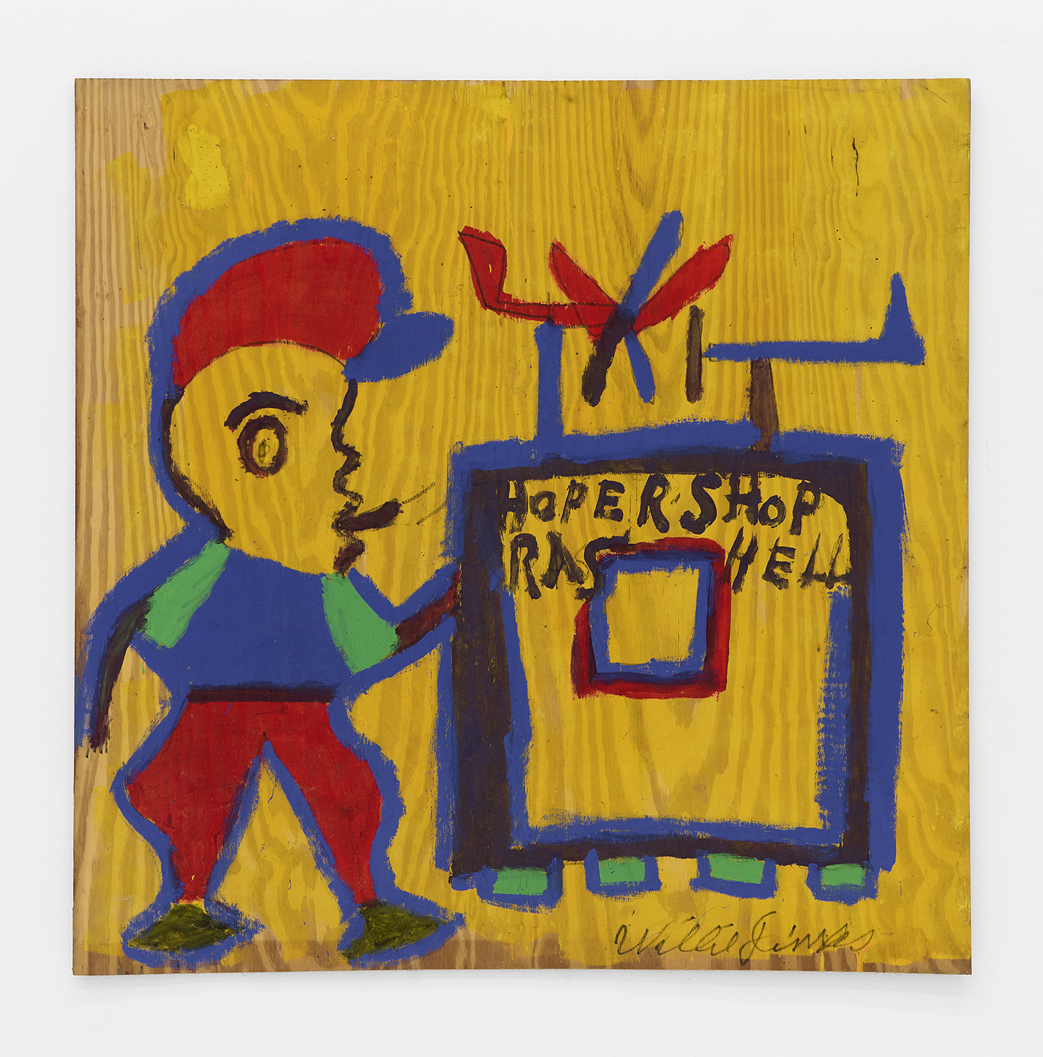 Willie Jinks, Untitled ("Hopershop Ras Hell"), 1990, Paint on Wood, 48 x 48 inches, 122 x 122 cm.
