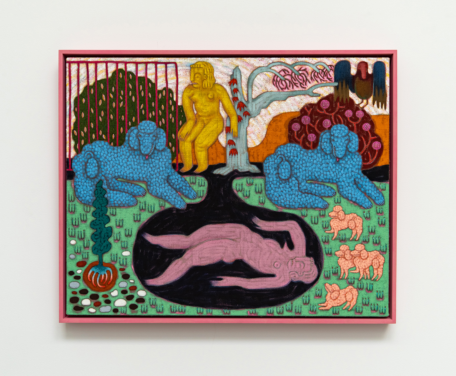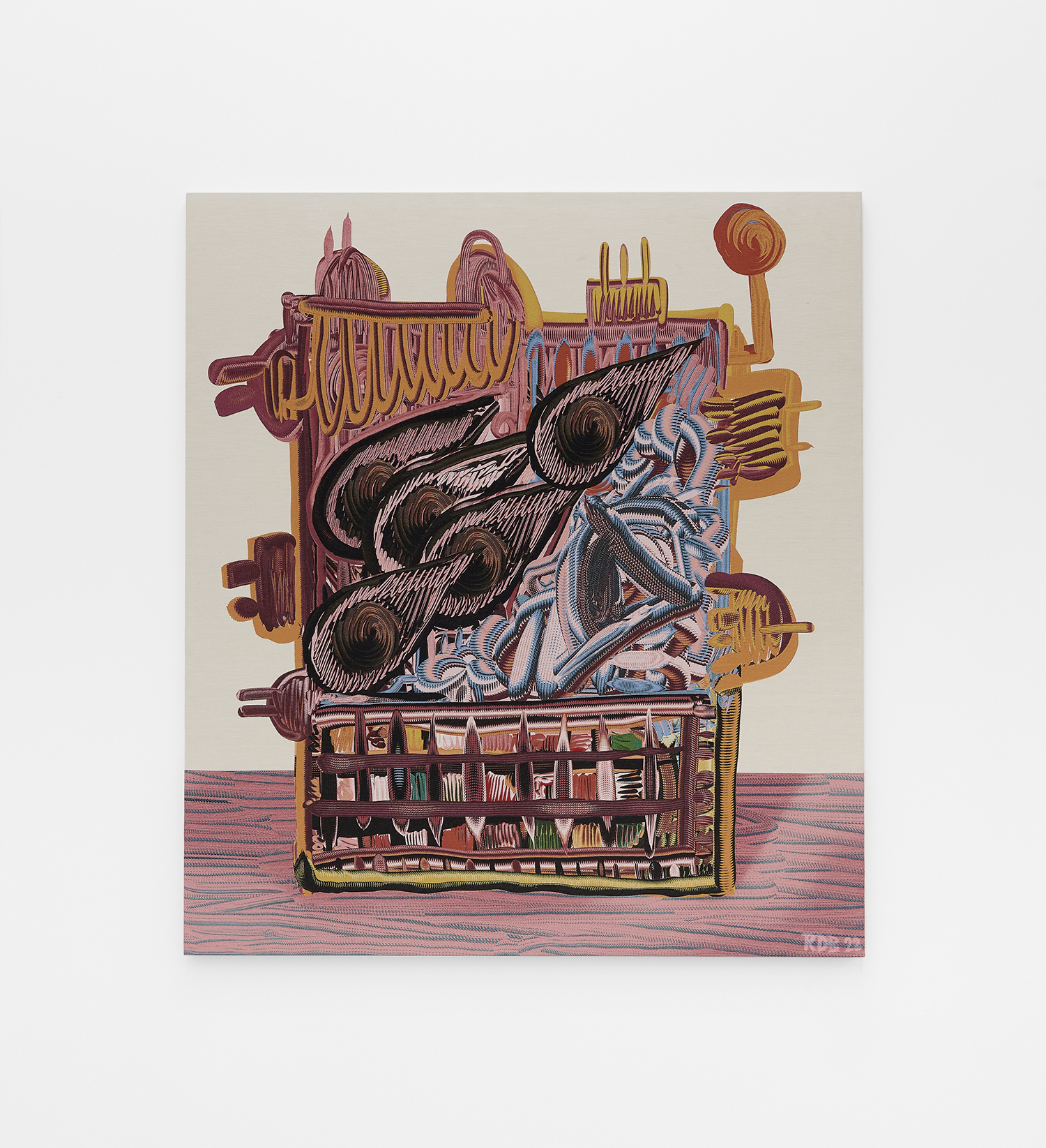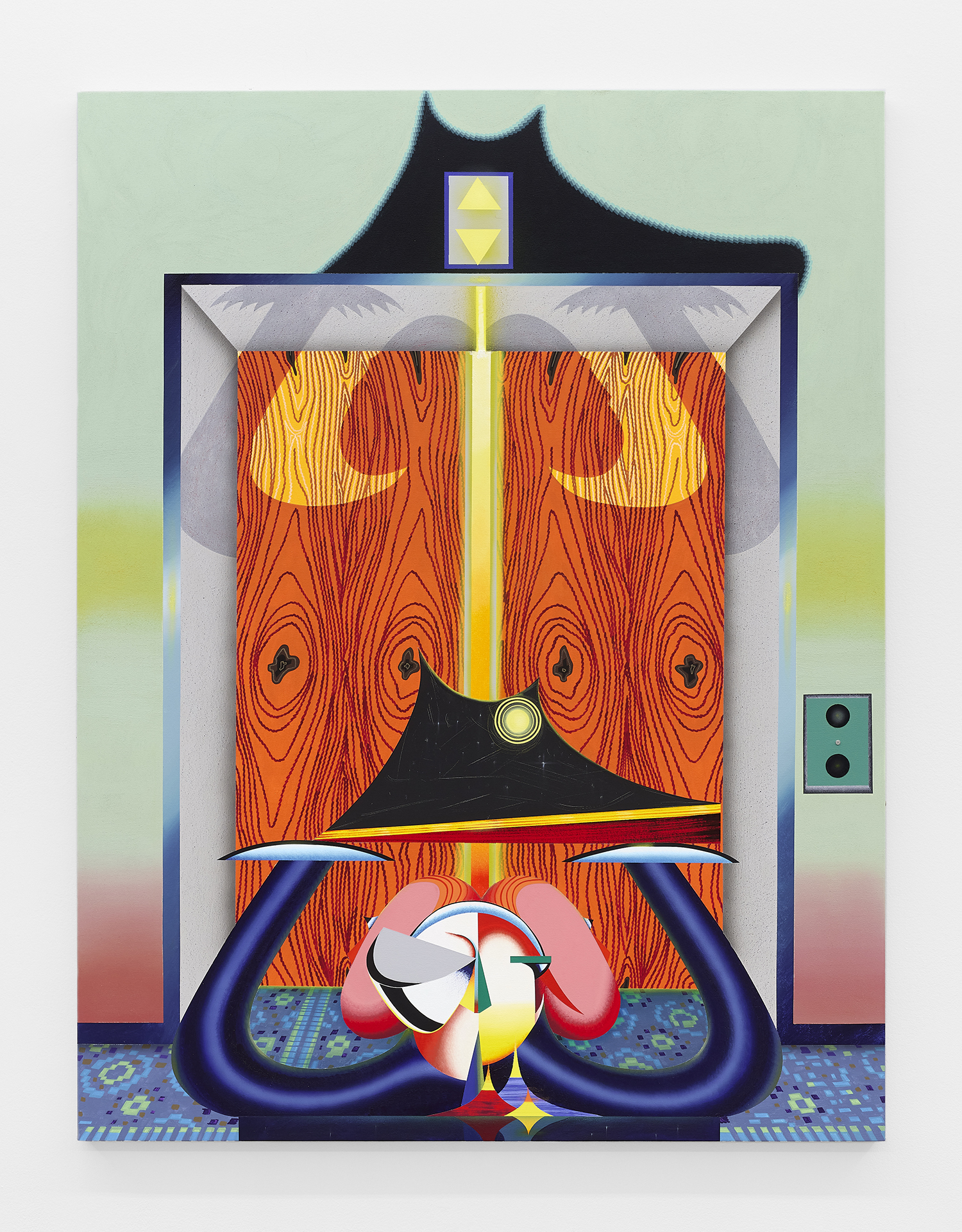 Ry David Bradley, ﴾୨ᵔvᵔ﴿୨, 2022, Acrylic, tapestry, 71 x 63 inches, 180 x 160 cm.