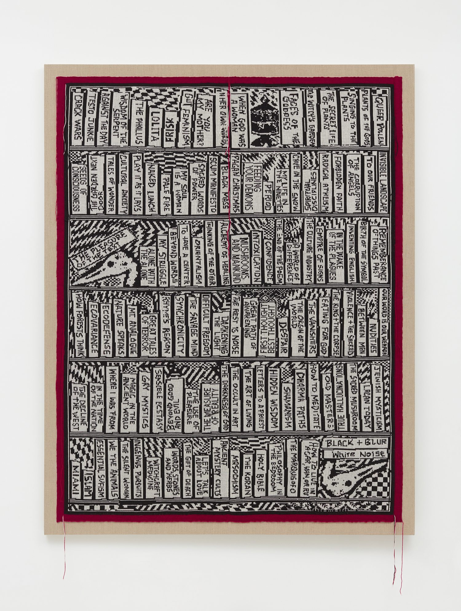 Lisa Anne Auerbach, Invisible Landscape, 2019, Merino wool stitched onto stretched linen, 80 x 63 inches, 203 x 160 cm.