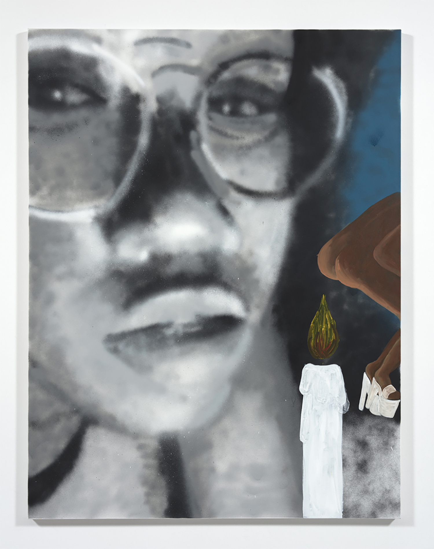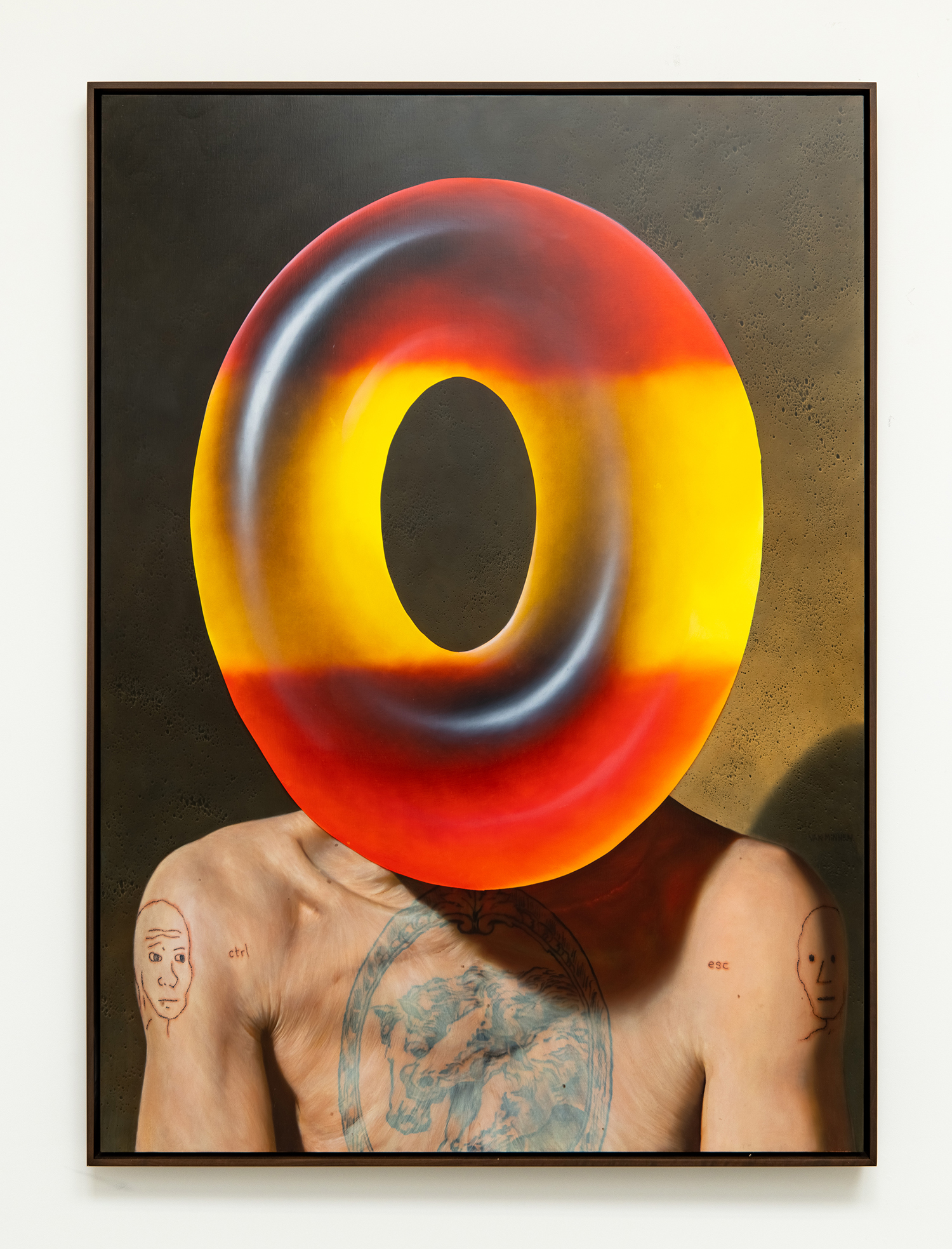 Eric Yahnker, Fraptism, 2022, Oil on prepared burlap, 42 x 24 inches, 107 x 61 cm.