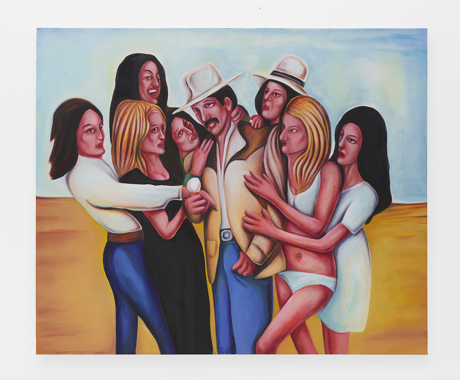 Vassilis H., Seven Women and a Cowboy, Oil on canvas, 79 x 95 inches, 200 x 240 cm.