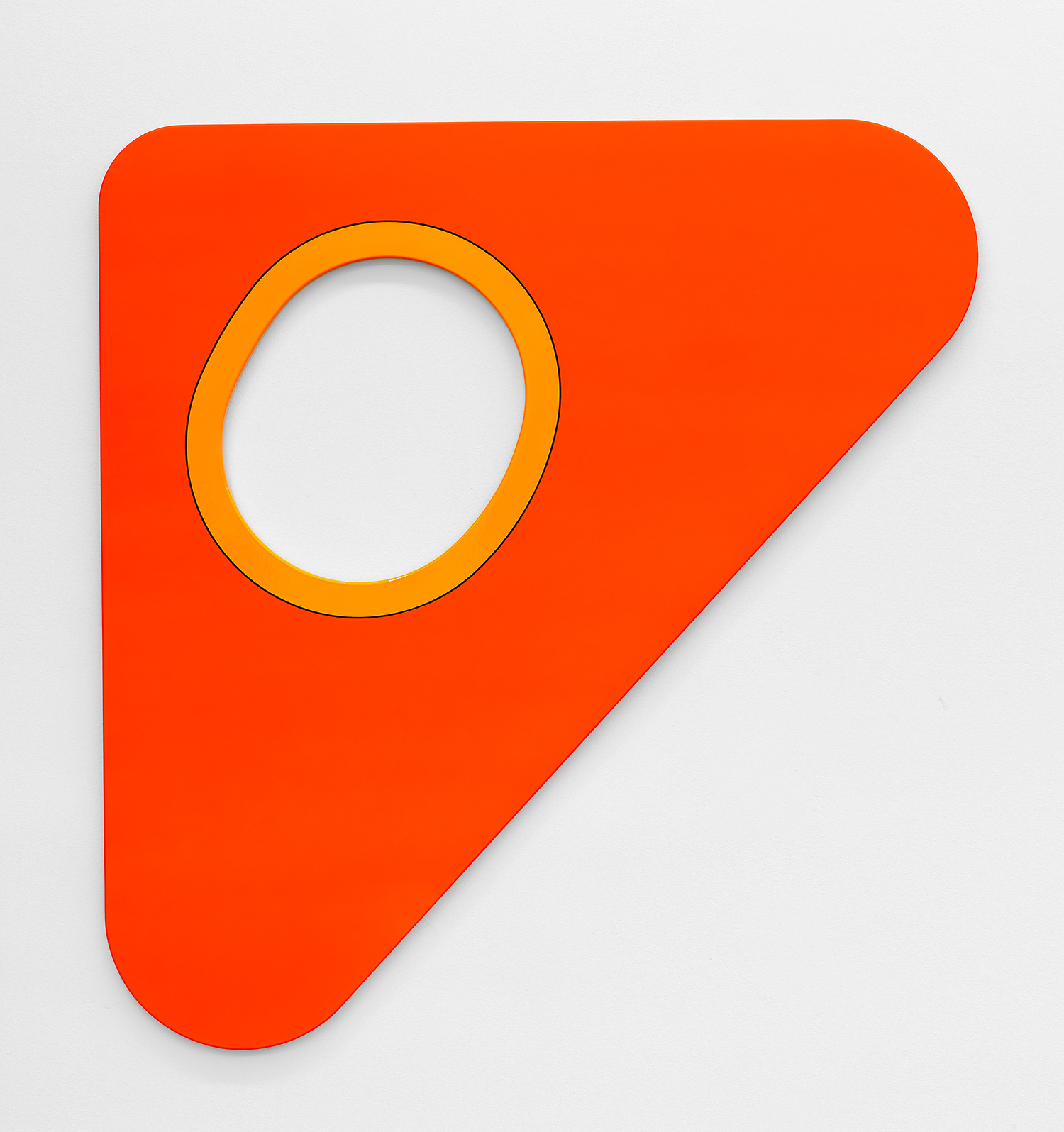 Greg Bogin, Outgoing Message (Orange), 2018, Acrylic and urethane on canvas, 61 x 58 inches, 147 x 155 cm.