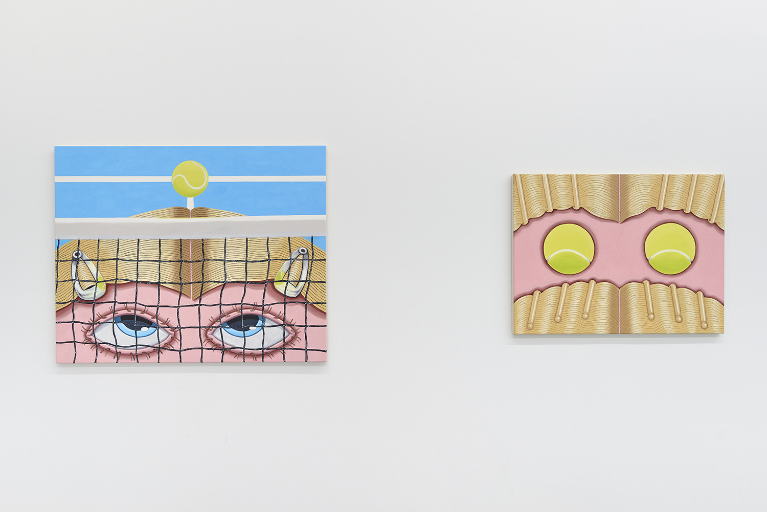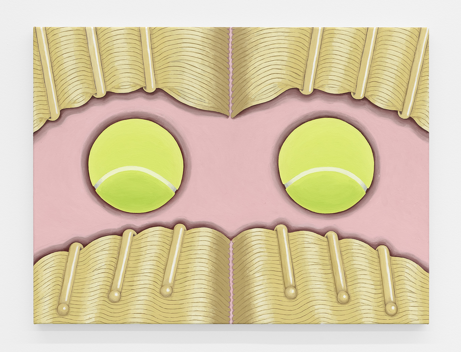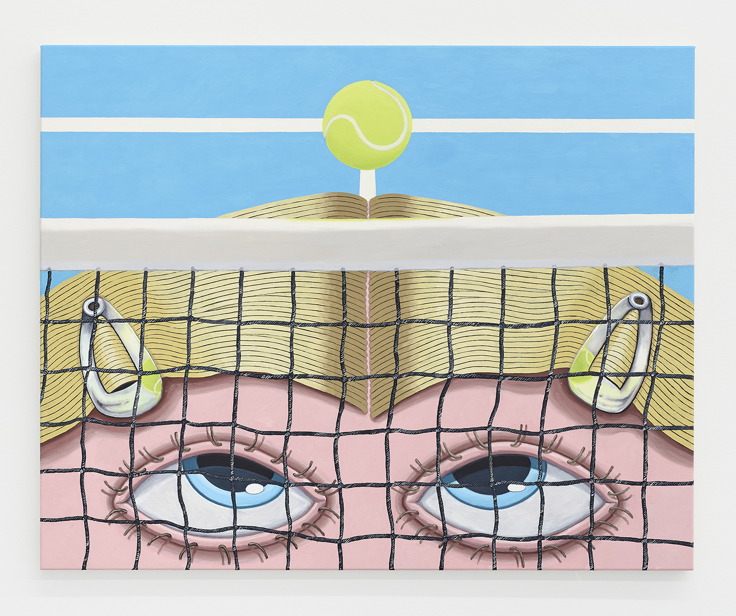 Hamish Chapman, Balls With Kirby Grips, 2023, oil on canvas, 39 x 30 inches, 99 x 75 inches.