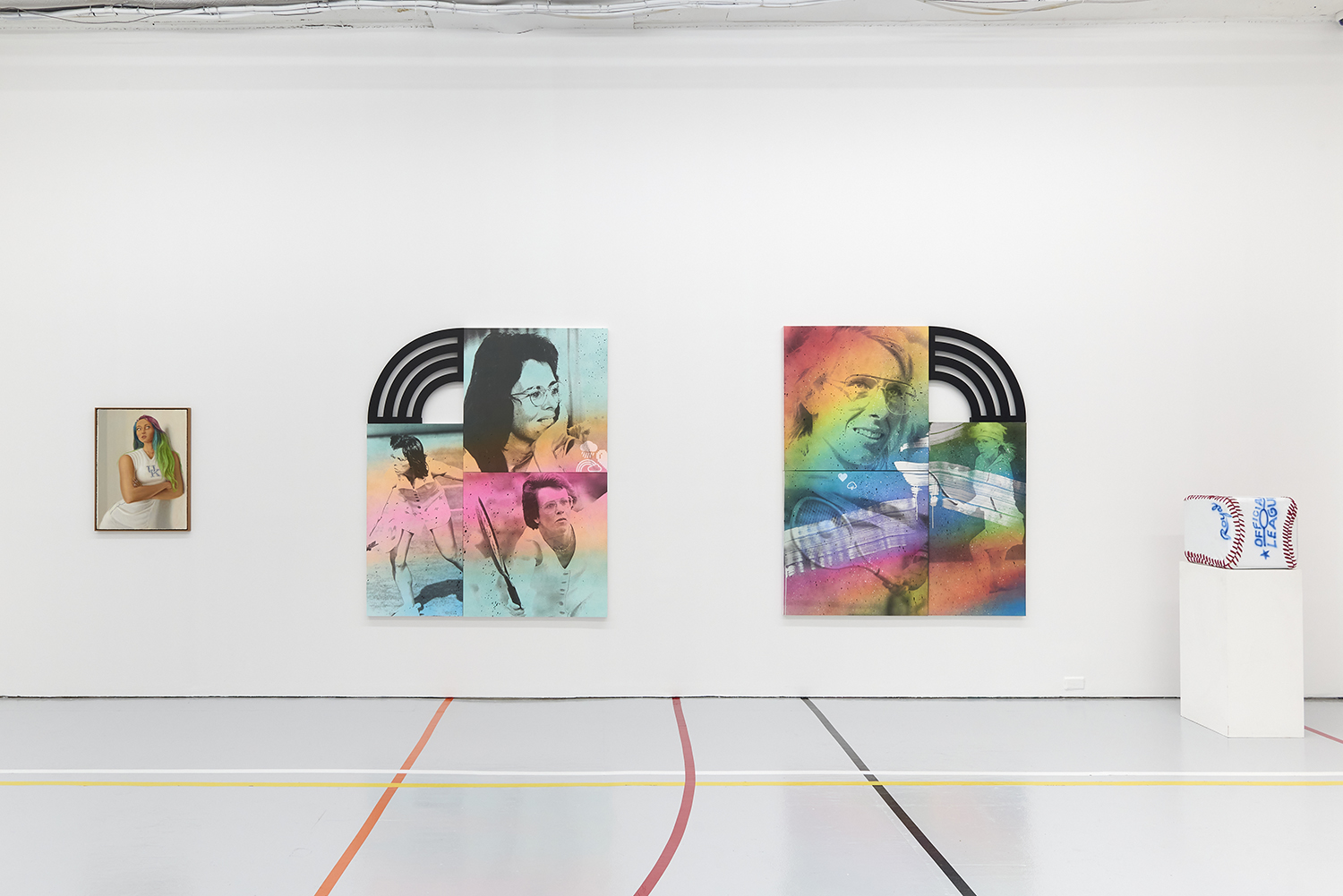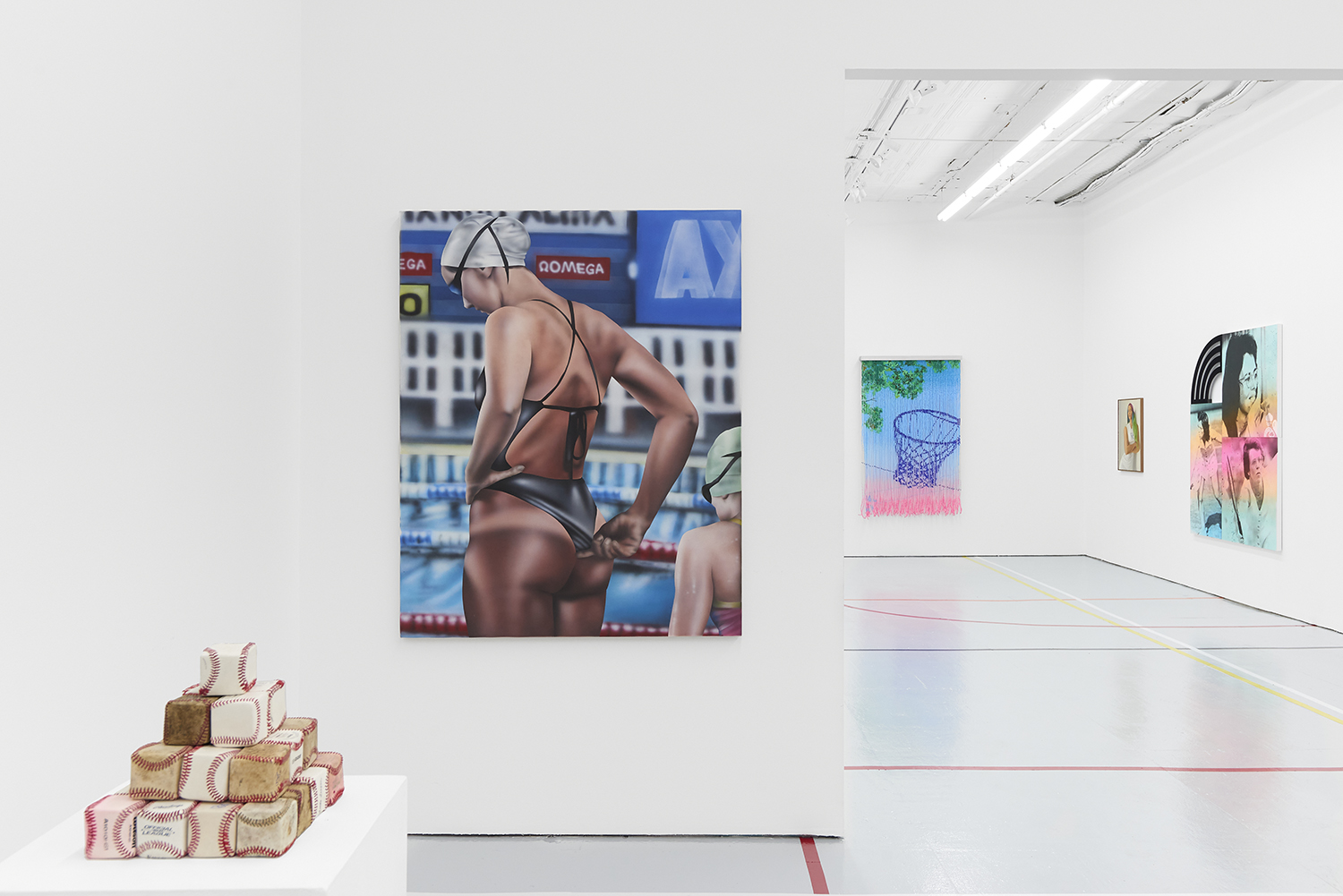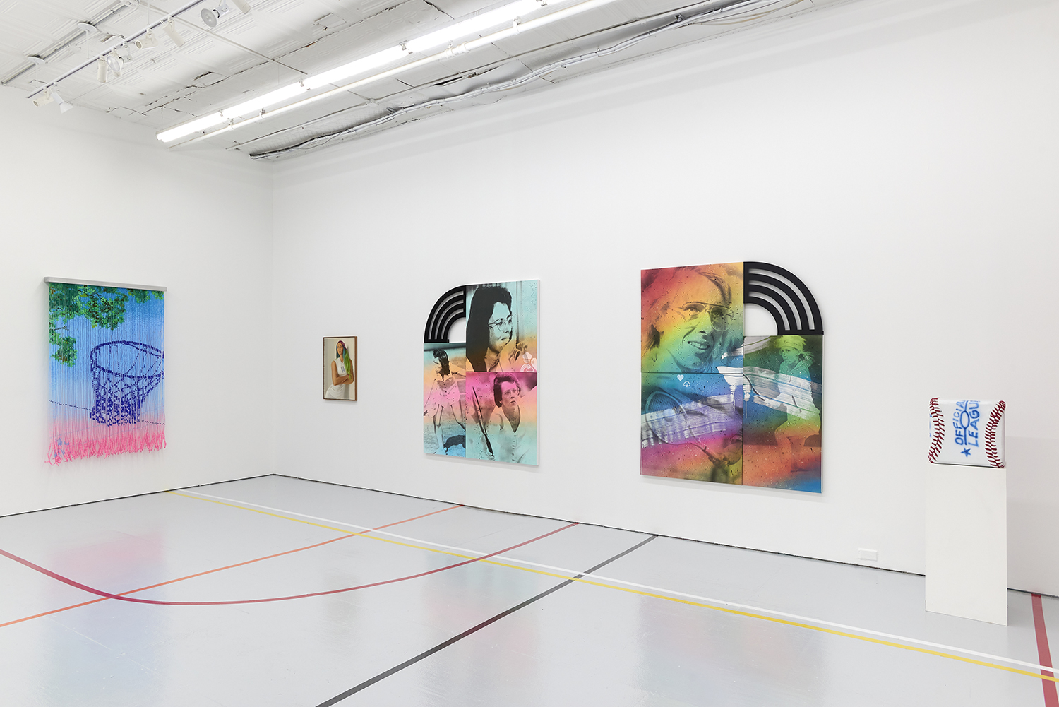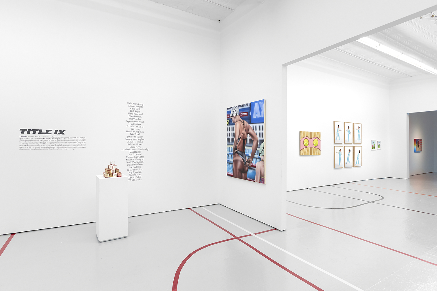 The Hole is proud to present Title IX a sports-themed group show across our two New York galleries, Bowery and Tribeca, curated by Charlotte Grüssing. The exhibition’s title references the policy that requires educational institutions to treat all sexes and gender identities equally, widely known for its impact on expanding opportunities for women and girls in sports. While celebrating women and historically excluded groups in sports, the exhibit highlights both Title IX’s impacts and shortcomings while more broadly exploring the politics, pleasure and power of sports.