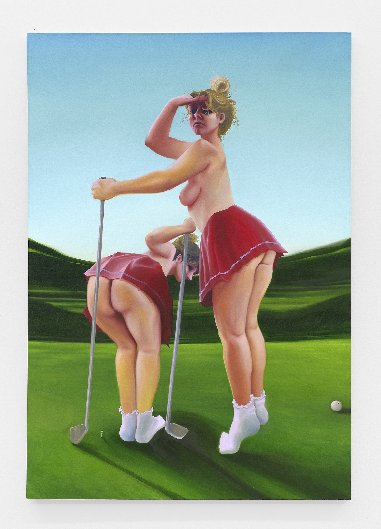 Elena Redmond, Real Girls Playing Real Golf, 2023, oil on canvas, 72 x 50 inches, 183 x 127 cm.