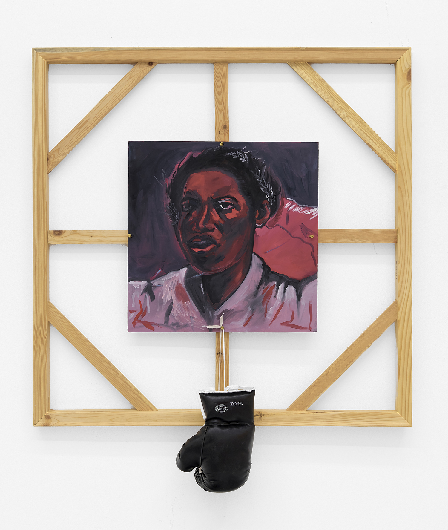 Nikko Washington, The Warrior, 2023, acrylic on canvas, boxing gloves, 40 x 40 inches, 101 x 101 cm.