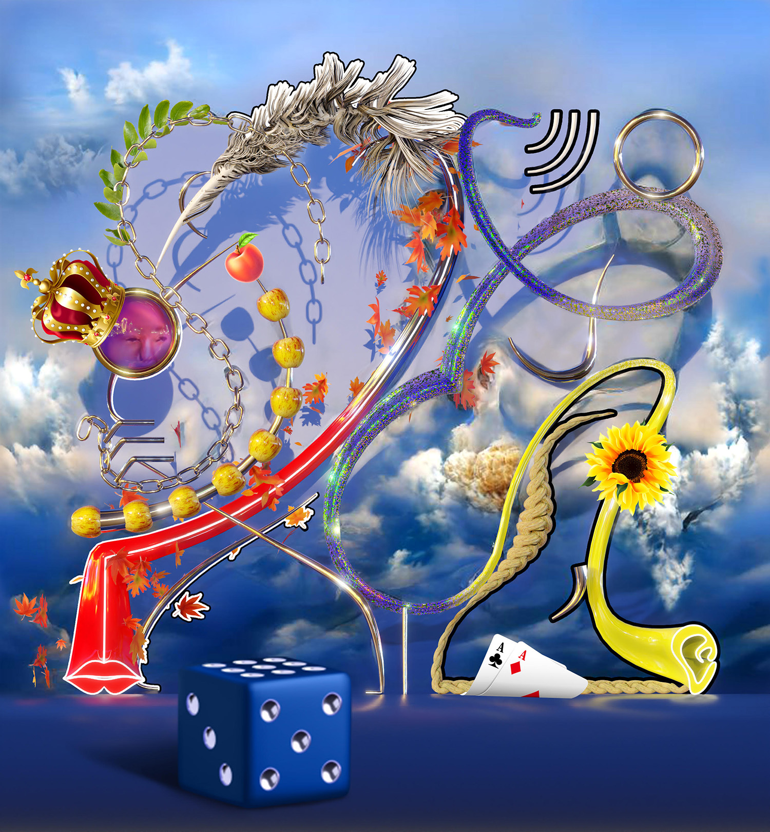 Kevin Bray, Gambling With Figures, 2022, printed on velvet, PLA 3D print, foam, 43 x 35 inches, 109 x 90 cm