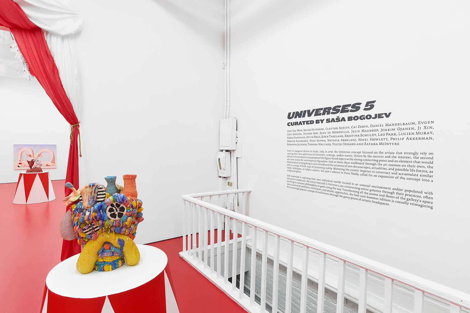 The Hole is proud to present the 5th iteration of the Universes group exhibitions conceptualized and fostered by Saša Bogojev. After the initial presentation in Imola, Italy, in 2018, Amsterdam in 2019, Hong Kong in 2020, and the big Paris show in 2021, Universes 5 is the largest one in the series bringing a selection of 26 artists that work with painting, sculpture, and installation. Transforming all the rooms and floors of the gallery’s Tribeca space into a carnival of aesthetics, techniques, and approaches, the first-ever Summer edition of the show is casually reimagining the increasingly popular concept of multiverses through the gutsy prism of artistic headspaces.