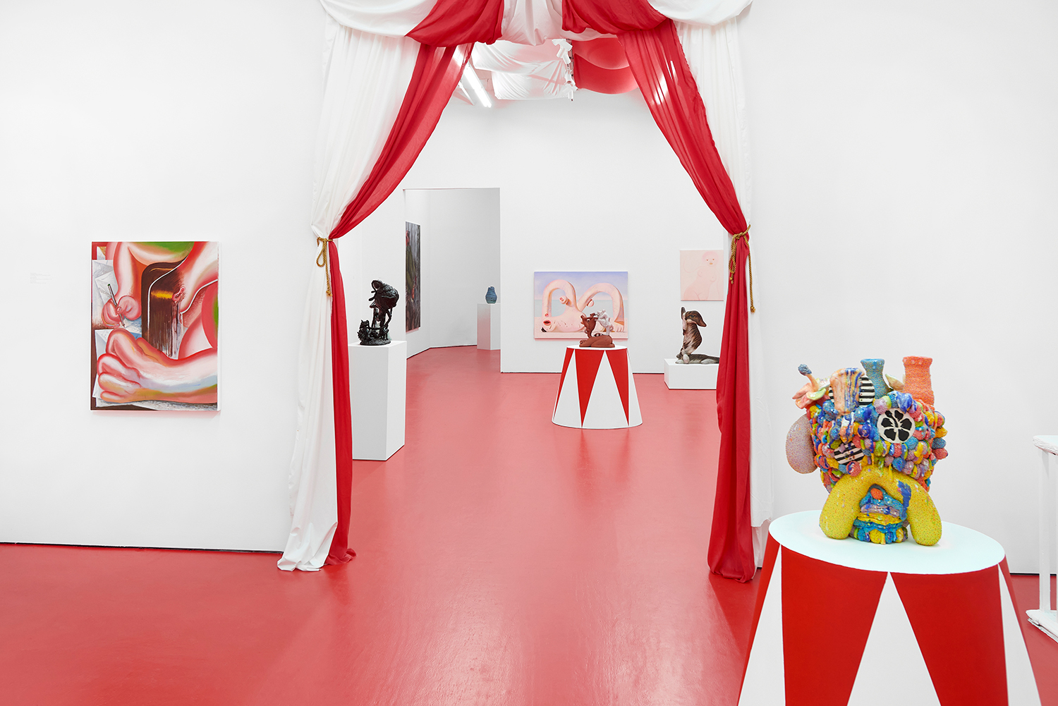 Among the dominating selection of paintings in Universes 5, the iconic Dutch painter Philip Akkerman will provide us with a taste of his exceptional world that’s been exclusively built on self-portraits for over four decades now. Also, interested in the subject of the artist’s relationship with his practice and work, Chinese artist Cai Zebin will introduce his vision of such dynamic, and so will the German painters Kristina Schuldt and Tamara Melcher. Another way of self-reflection will be presented through the work by NYC-based Zatara Mcintyre or Korean Heesoo Kim, while Martin Kačmarek will introduce his vision of the forgotten Slovakian countryside. And pushing us into a fantastical, imaginary sphere, Spanish Juan de Dios Morenilla or Finnish Mari Sunna will challenge our minds with their perspective and reinvention of reality. Such challenging will surely intensify through the sculptural works by the Korean Ahn Tae Won or the multi-colored hand-carved works by American Bayne Peterson. The melting of minds is to be expected while experiencing the incredible ceramic work by Japanese sculptor Kazuhito Kawai, or finally while immersing in the digi-phisycal installation by the brilliant French mastermind that is Kévin Bray.
