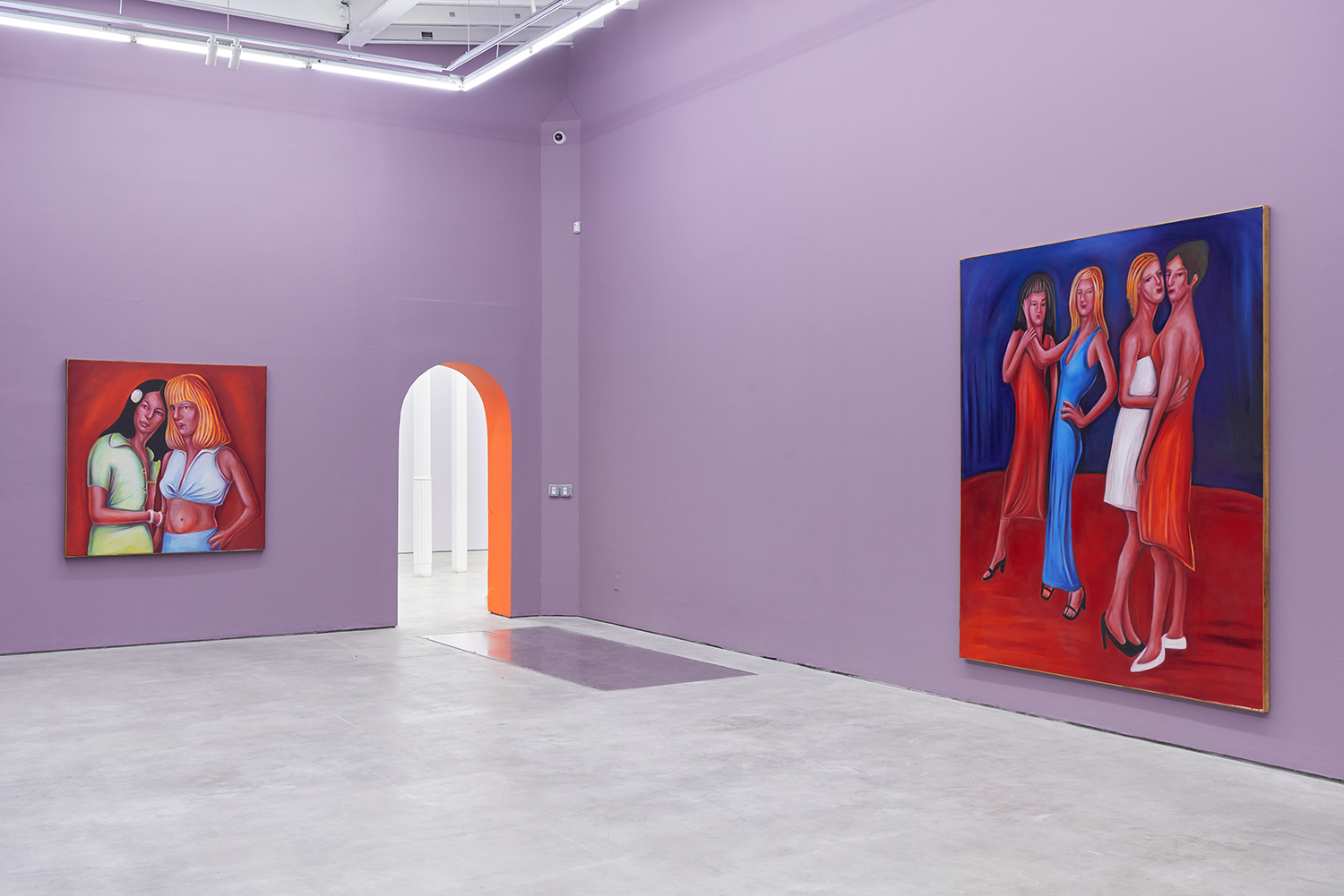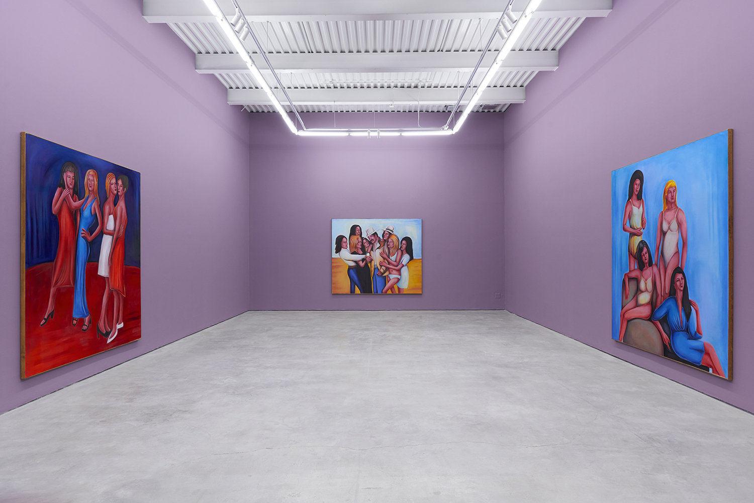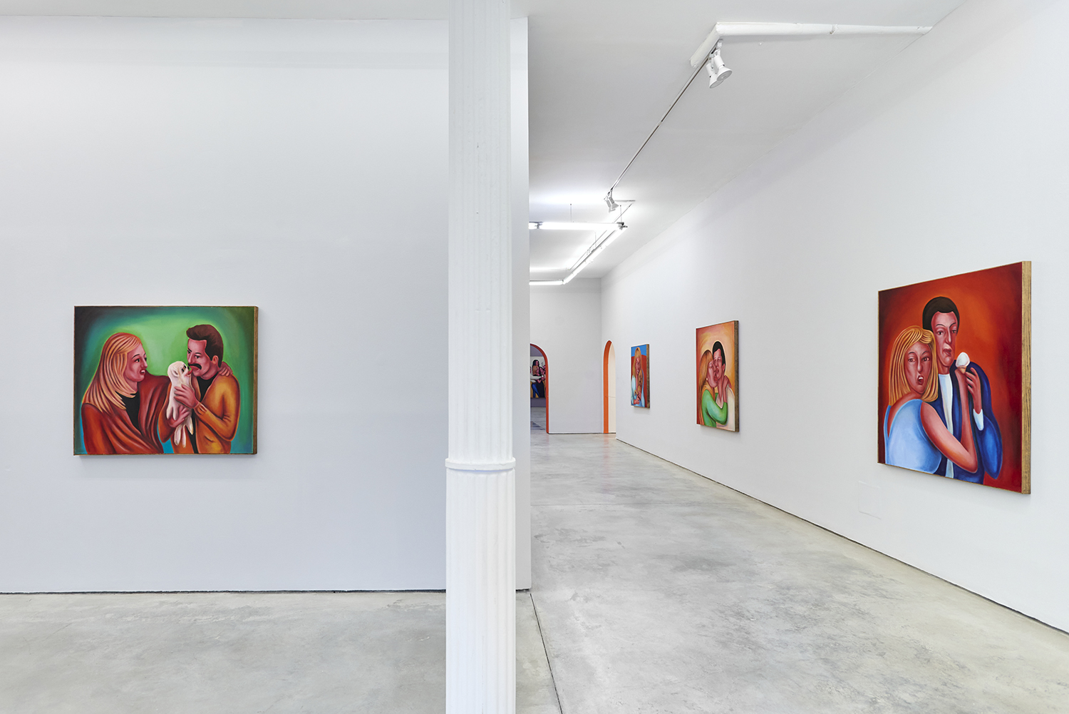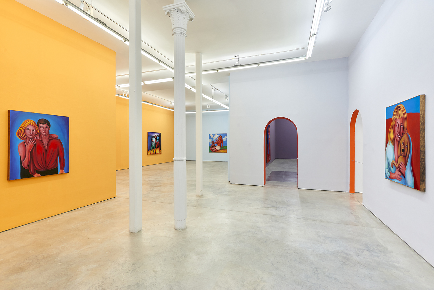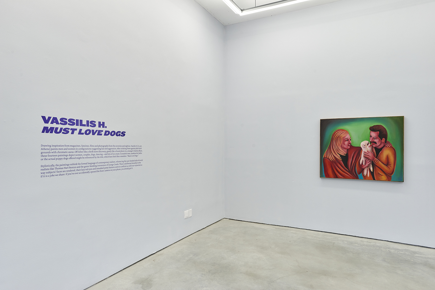 Vassilis’s subjects, from a very popular vaquero to a quartet of slow-dancers, all seem aware of an external gaze, bracing for it. Off-kilter like a thrift store discovery, gnarly like a found photo in a stranger’s family album, these fifteen paintings depict women, couples, dogs, dancing—and lots of ice cream. Scoundrel men, unattractive ladies or the actual puppy dogs offered might be referenced by the title, which here feels like a mandate: “Must Love Dogs.”