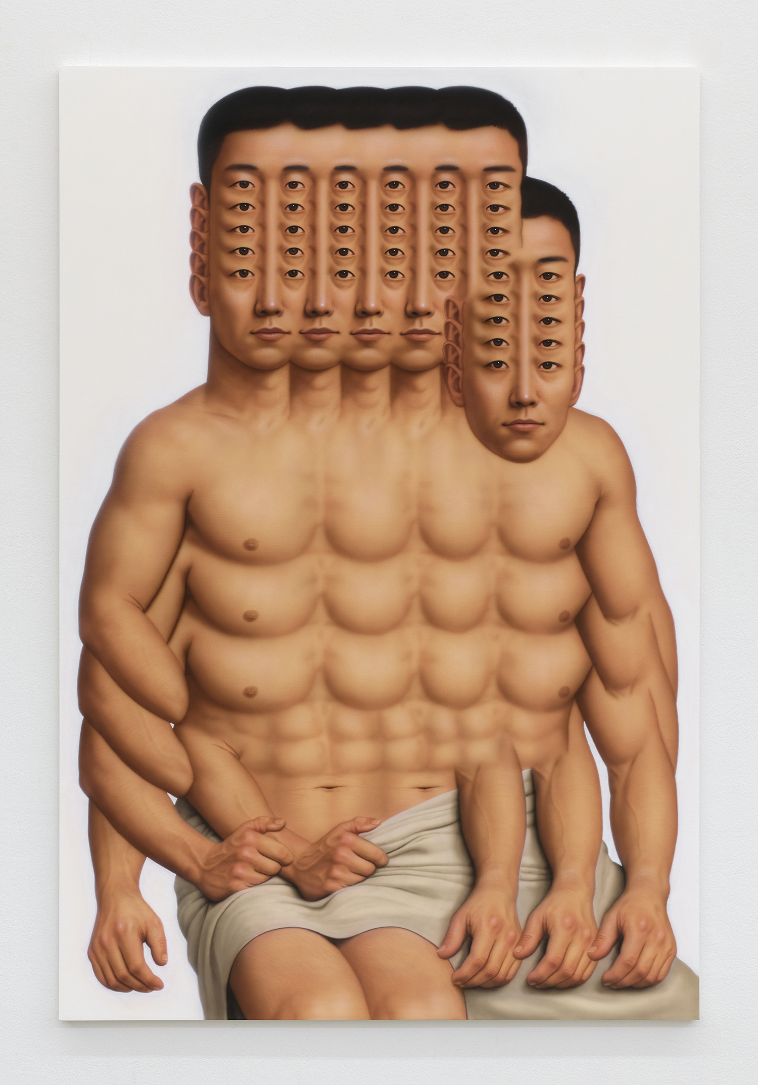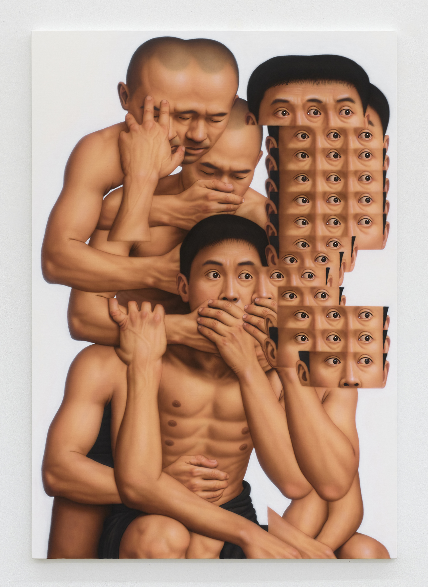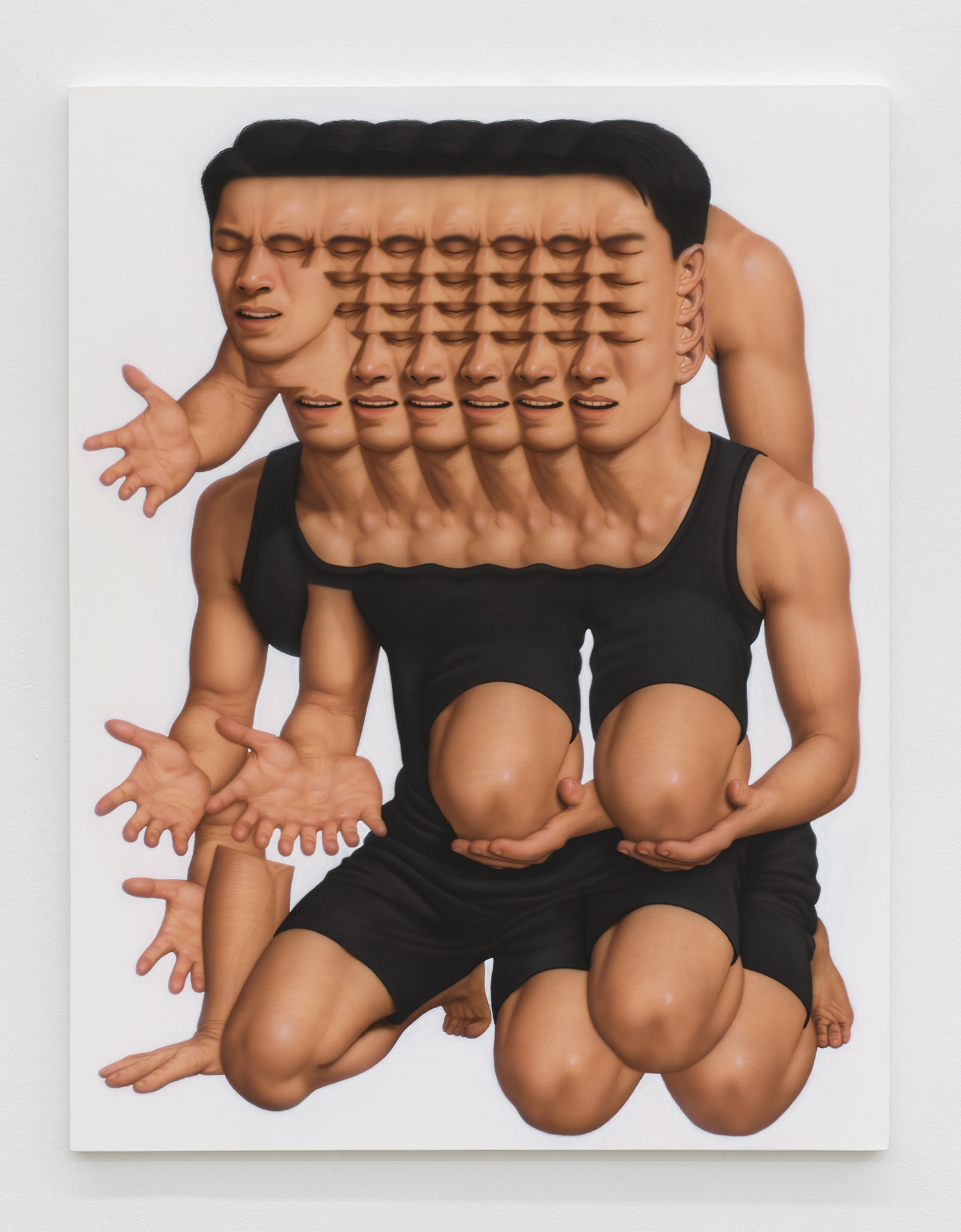 If these works carry a hint of science fiction, it’s not because they depict another world, but because they expose how mysterious our own is. They suggest parallel realities or biotech mutations, yet their real subject is human nature—the tangle of emotion, imitation, and desire that shapes our behavior. As the titles imply, Yi’s repetitions probe the “unknowability of the other.” His figures multiply like frames in a time-lapse, a kind of psychological Cubism where dilation replaces motion and emotion finds form. The proliferation of bodies provides a surplus of “body language,” yet even with this abundance of gesture, the inner world remains hidden. Behind the many “windows” of the eyes, each of our "buildings" is sealed off; surrounded by others, we remain unknowable to one another.